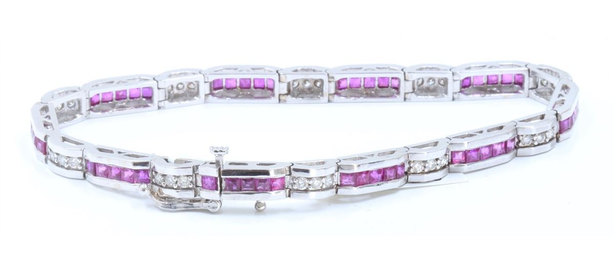 14K White Gold Ruby Bracelet :16.65 Grams/Ruby:4.28ct/Diamond:0.71ct/#R8005