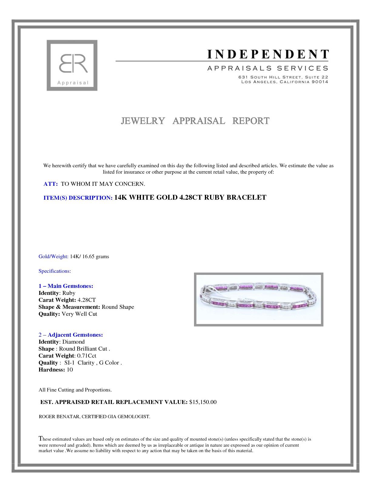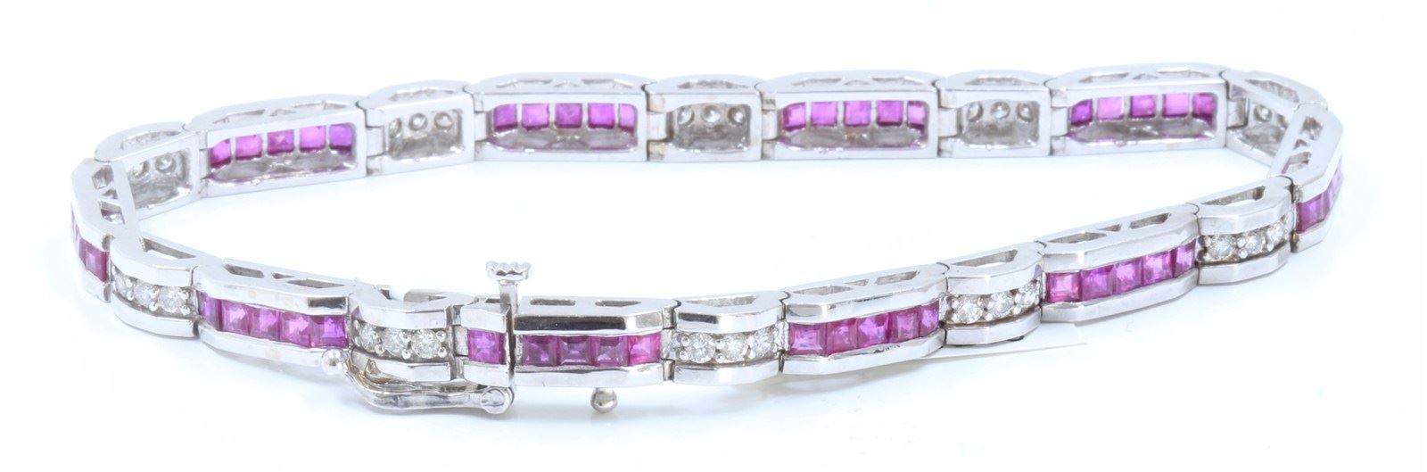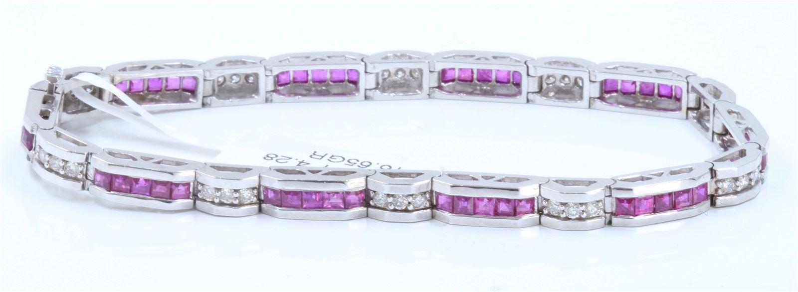 14K White Gold Ruby Bracelet :16.65 Grams/Ruby:4.28ct/Diamond:0.71ct/#R8005