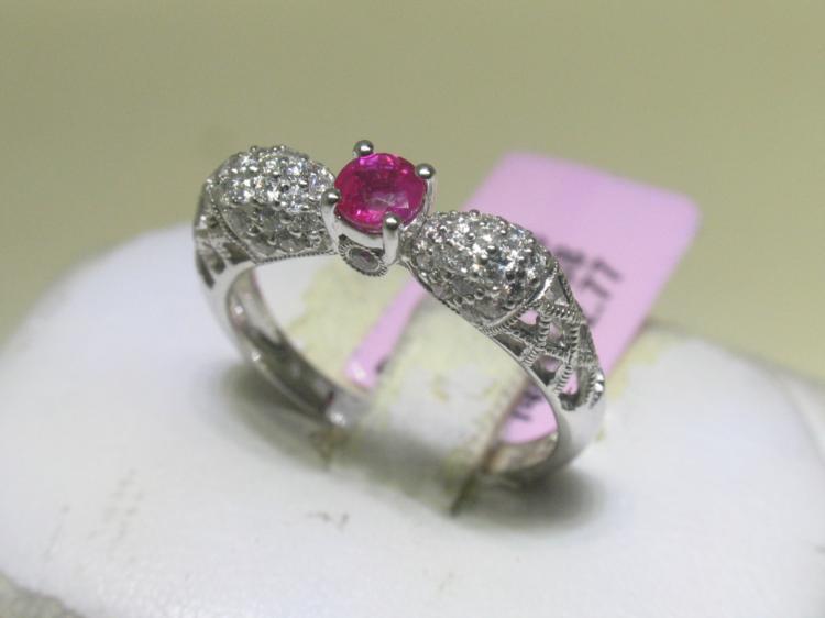 14K White Gold Ruby and Diamonds Ring, Sz. 7