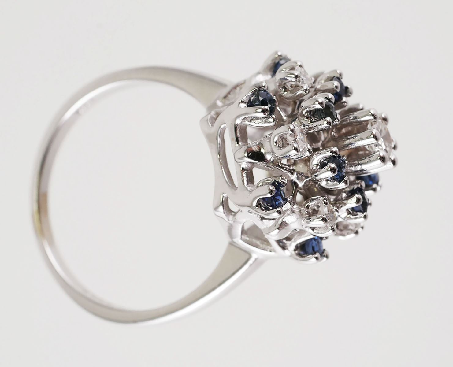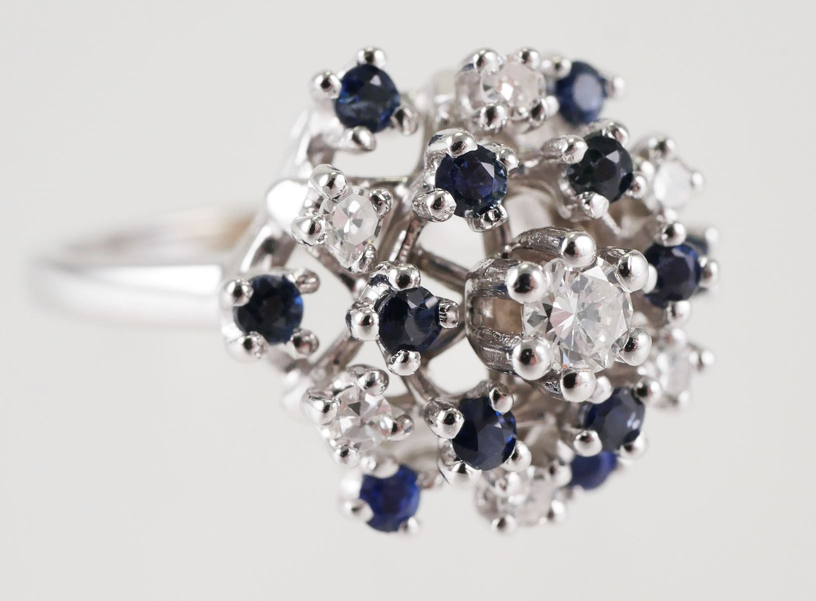 14K white gold cluster ring with 1.0 carat weight in diamonds. Ring is size 6 1/2, overall weight is 5.36 grams. Good condition with normal wear, see photos for more details on condition. (17)