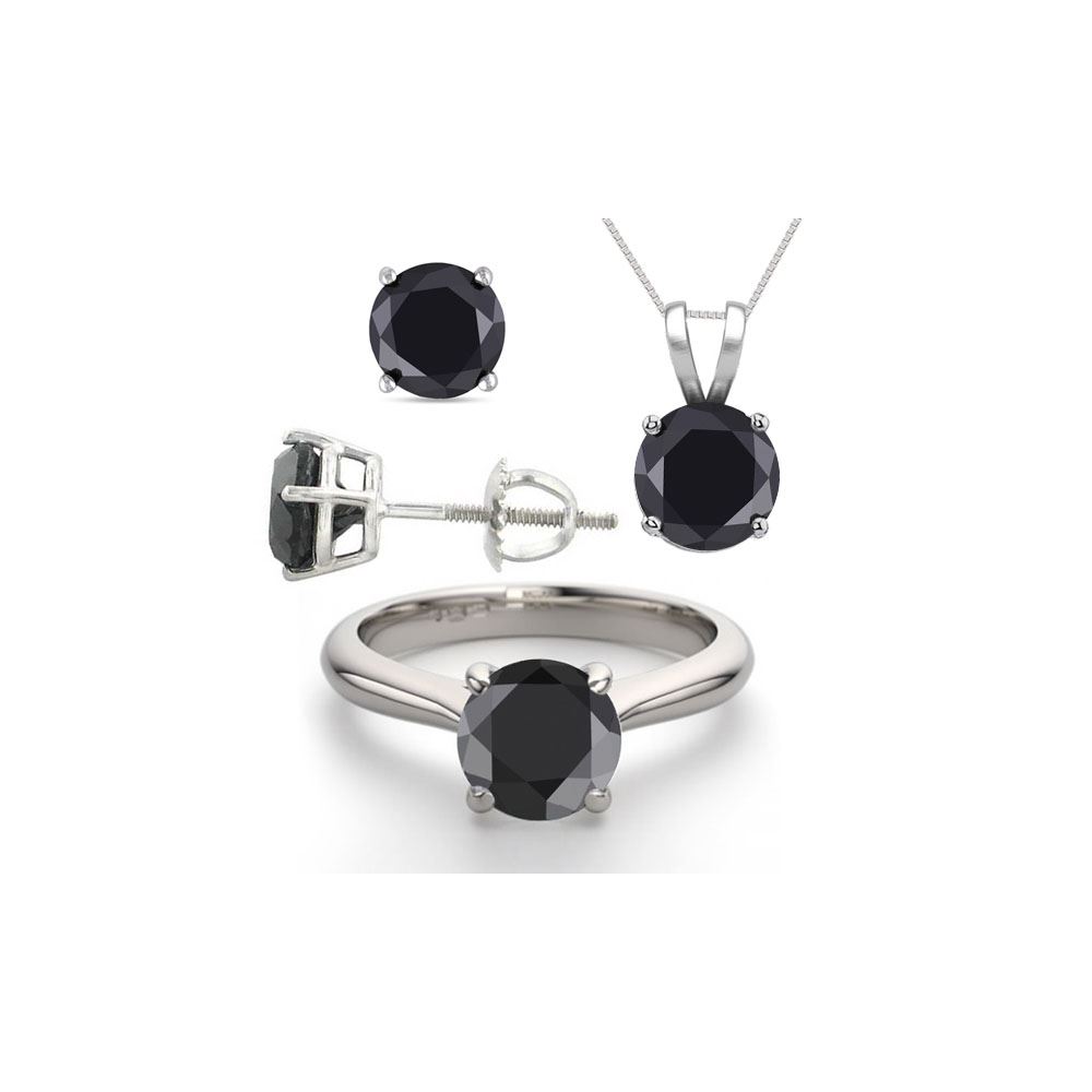 14K White Gold Jewelry 4.0 CTW Black Diamond SET Stud Earrings, Ring & Necklace