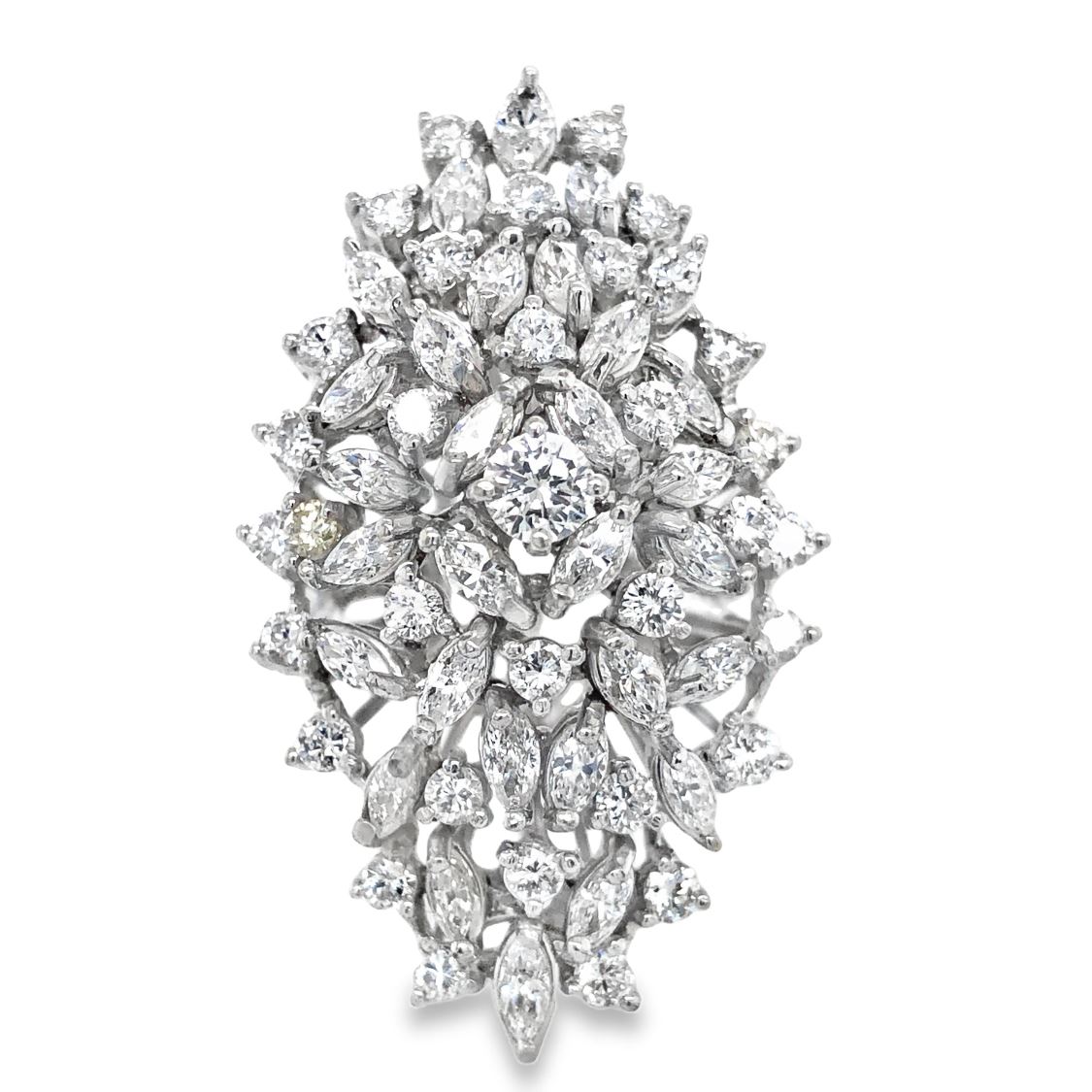 DESCRIPTION DETAIL: A gorgeous ring featuring a cluster of sparling natural marquise and round brilliant cut Diamonds in a Navette shape.