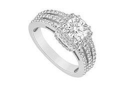 This sleek semi mount engagement ring is created in 14K white gold both side are pre set by brilliant cut round diamonds in three split rows and also round diamonds encircle prong set semi mount with TDW of 0.50 carat. Center diamond is not included in our semi mount ring. This ring is semi mount and ready to fit any round shape center diamond or gemstone of your own choice. It also available in bigger center stone. If you supply center stone we will set at no charge. This is perfect way to make ring of your dreams.