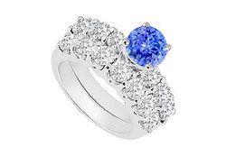 These stunning engagement ring and wedding band sets with center beautifully prong-set tanzanite & is complimented by three smaller round diamonds on each side along with matching semi-eternity band for complete sets of ring. Made in 14K white gold with total gem weight (TGW) of engagement ring 0.80 carat and wedding band 0.35 carat. It also available with seperate engagement ring model no. JS127AW14DTZ & wedding band model no.W127BW14D.