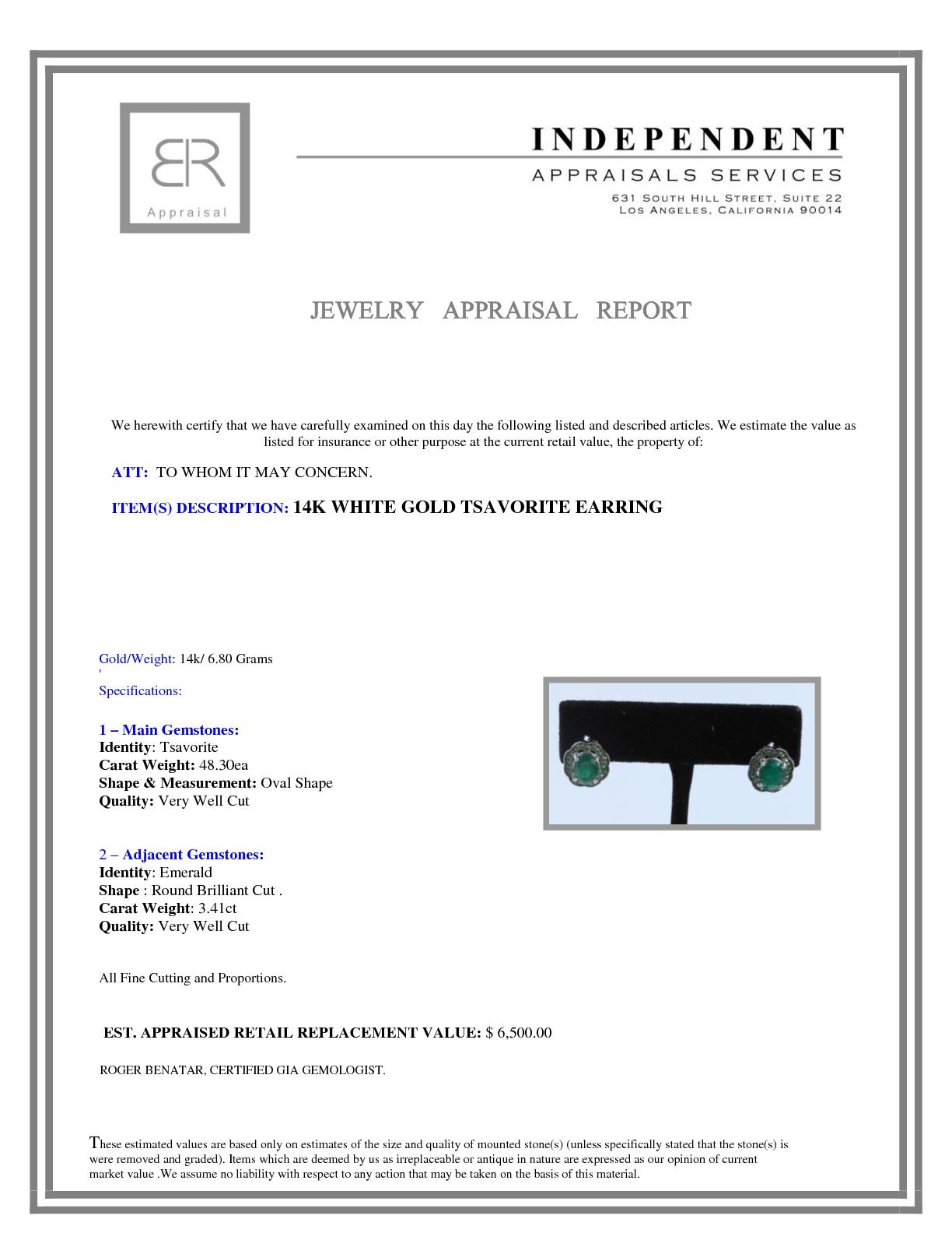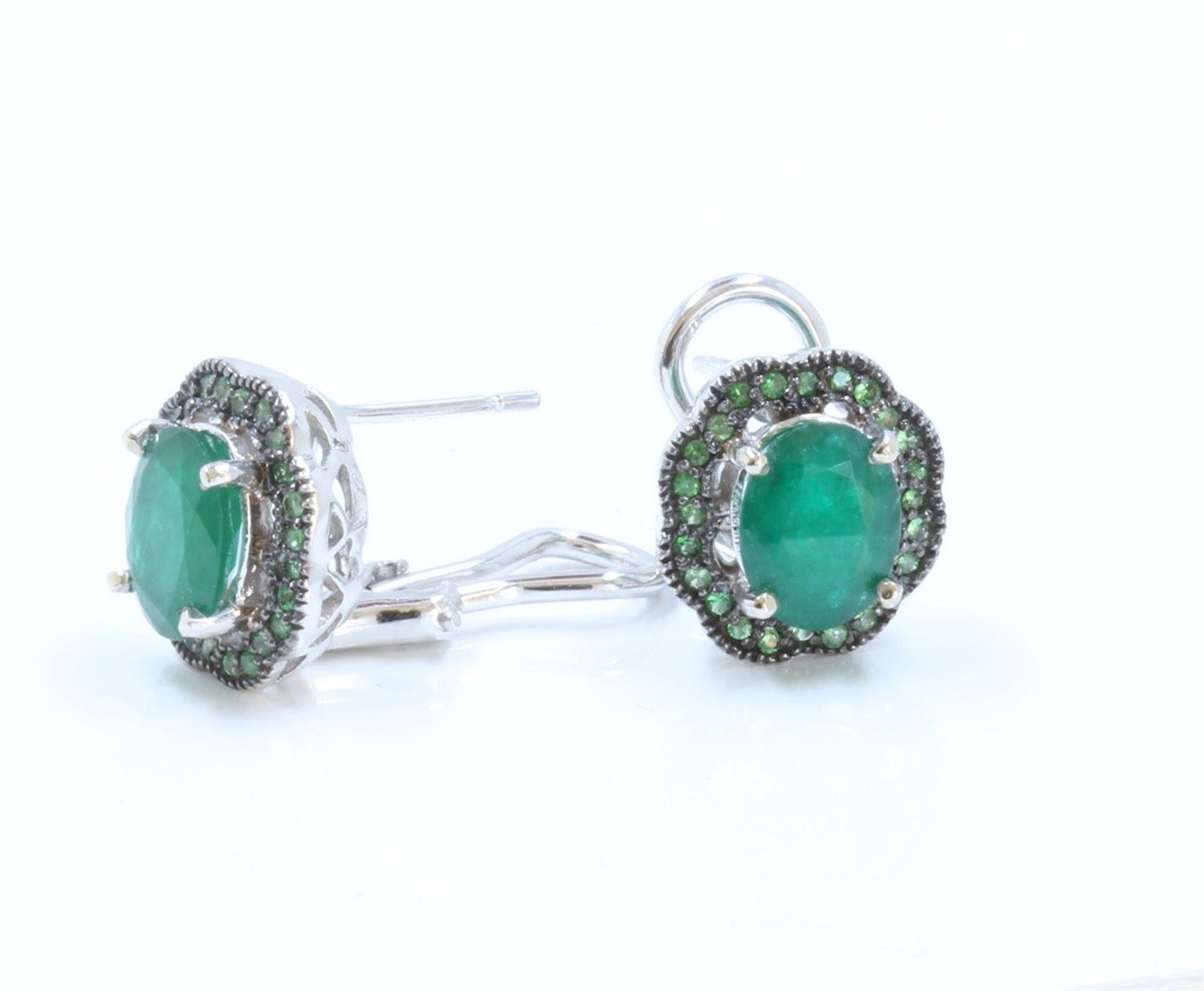 14K White Gold Tsavorite Earring:6.8g/Tsavorite:48ea/Emerald:3.41ct