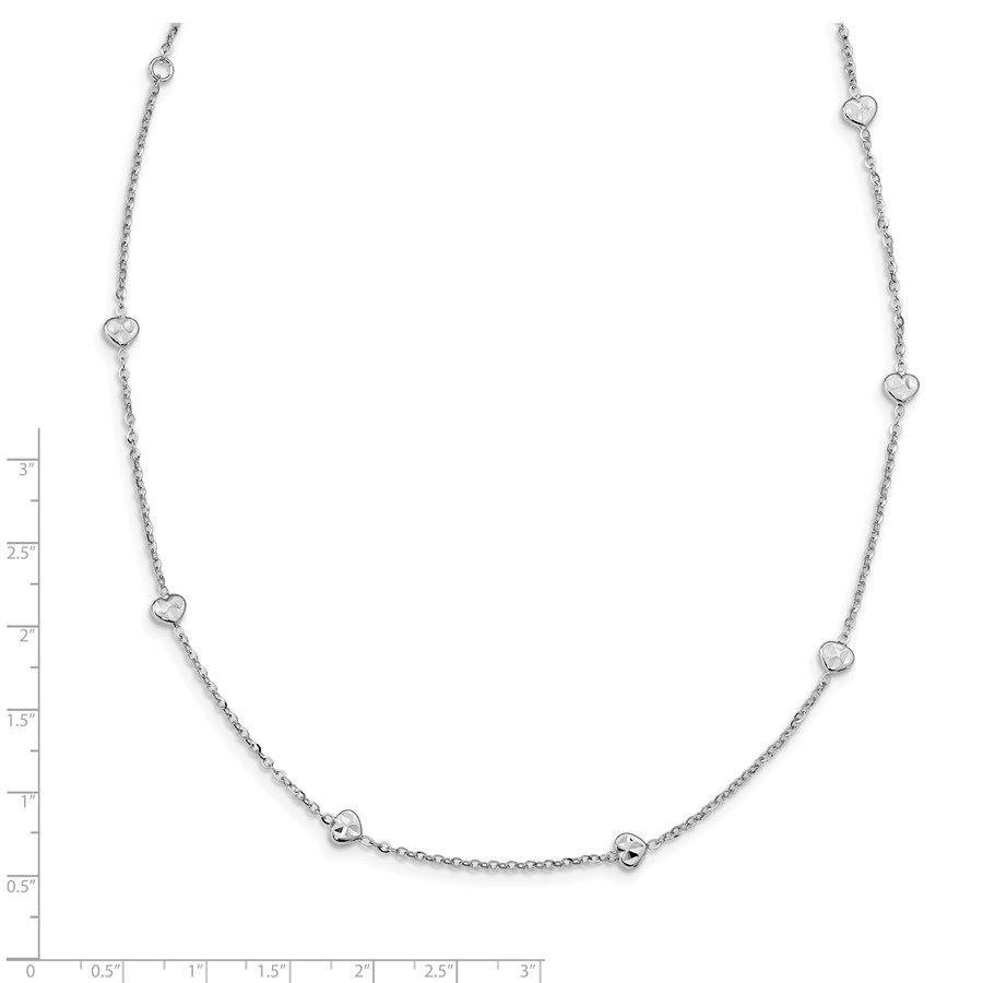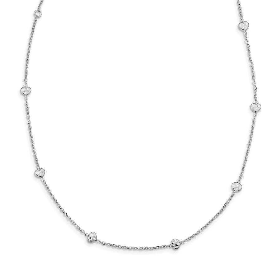 14K White Polished & D/C w/2 in ext Hearts Necklace - 17.5 in.