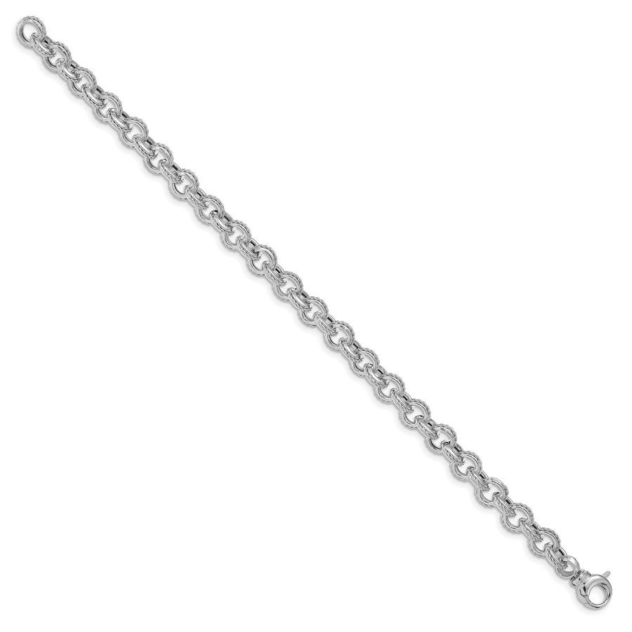 14K White Polished & Textured Fancy Link Bracelet - 7.25 in.