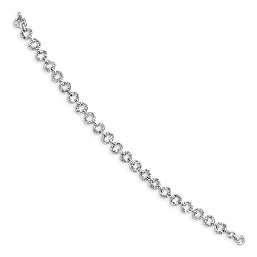 14K White Polished & Textured Fancy Link Bracelet - 7 in.