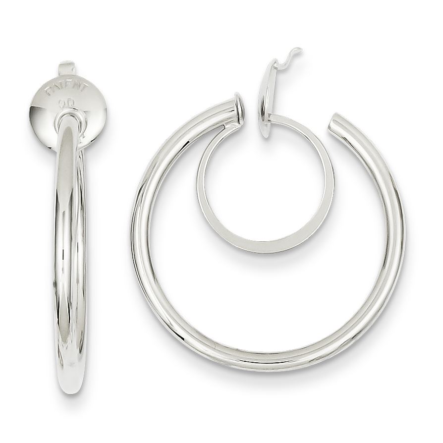 14K White Rhodium Non-pierced Hoop Earrings