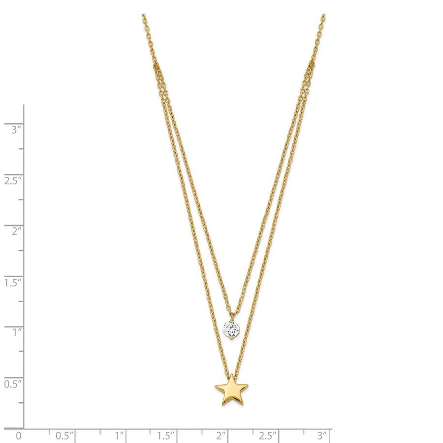 14K & White Rhodium Tiered Star and CZ Necklace - 16 in.