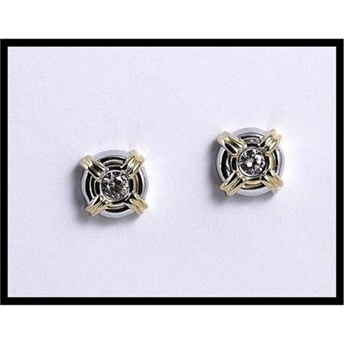 These earrings are stylish and extraordinary. 2 brilliant cut diamonds that weigh approximately 0.40 carats are set in 14K white and yellow gold. The earrings measure 11 millimeters (7/16 inches) in diameter and weigh 4.90 grams total weight.
