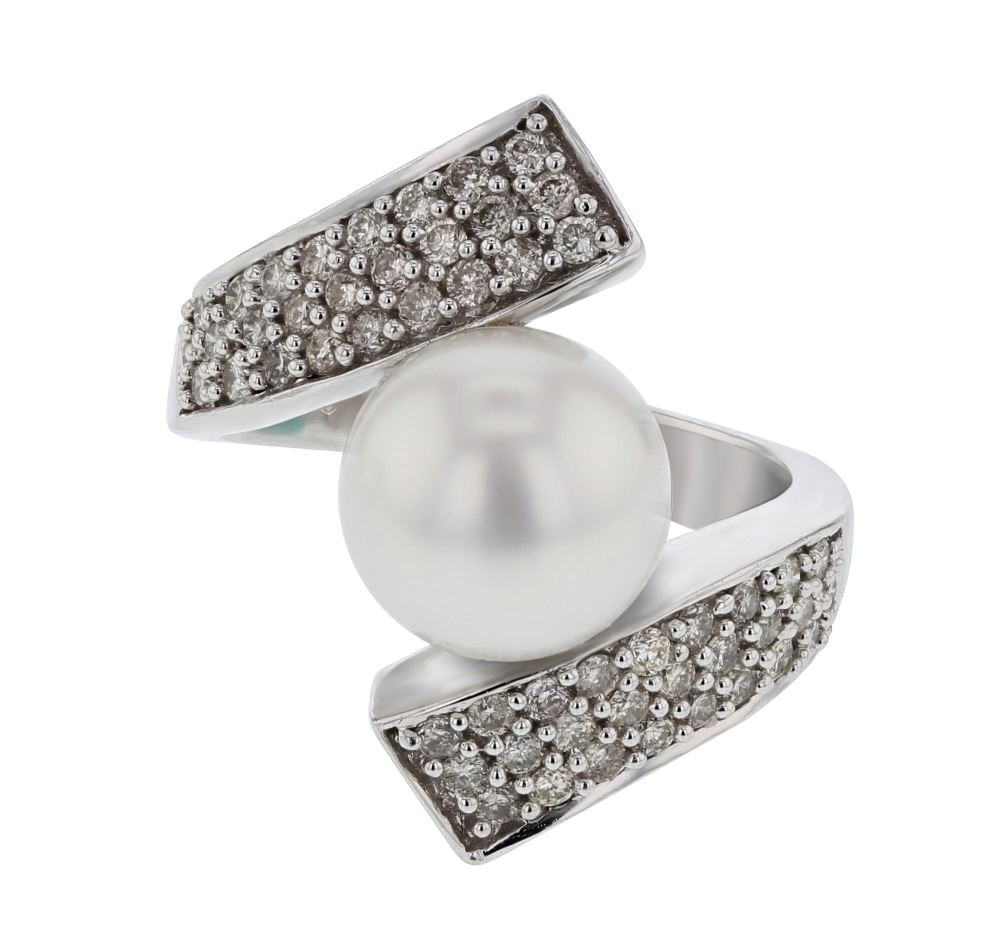 REF-95W6H ---- 14K WhiteGold 7.52CTW Pearl&Diamond Cocktail Ring