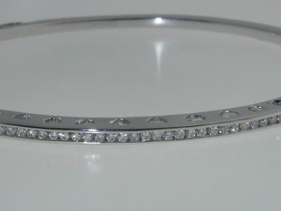 14K White Gold Diamond Bangle! The total weight of Bangle is 17.2 grams. The total weight of diamond is 0.65 cts. approximately, H color VS clarity. The size of Bangle is 60x53 mm, the surface is 3 mm wide and 5 mm in thickness.