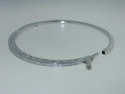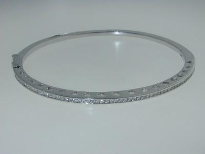 14K White Gold Diamond Bangle! The total weight of Bangle is 17.2 grams. The total weight of diamond is 0.65 cts. approximately, H color VS clarity. The size of Bangle is 60x53 mm, the surface is 3 mm wide and 5 mm in thickness.