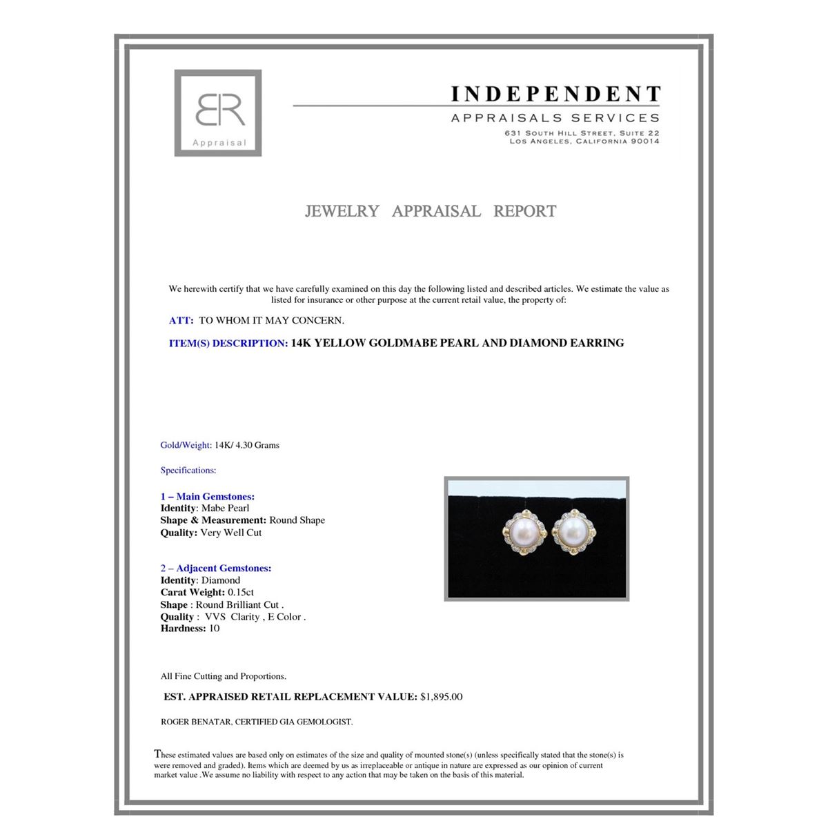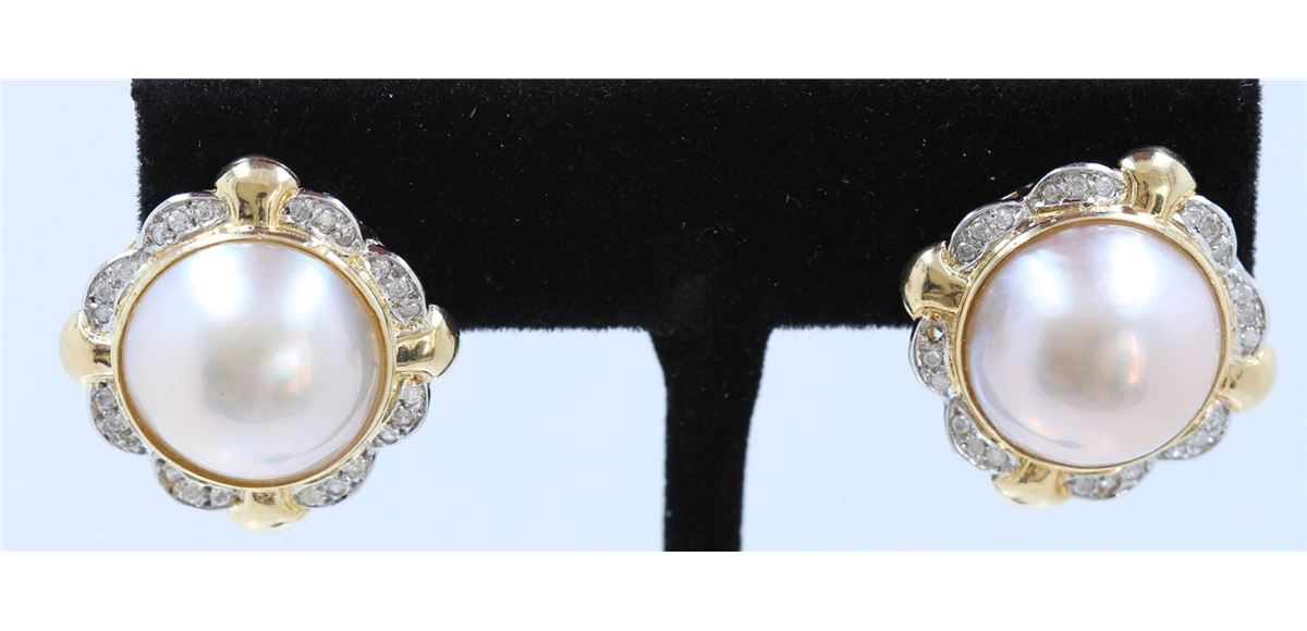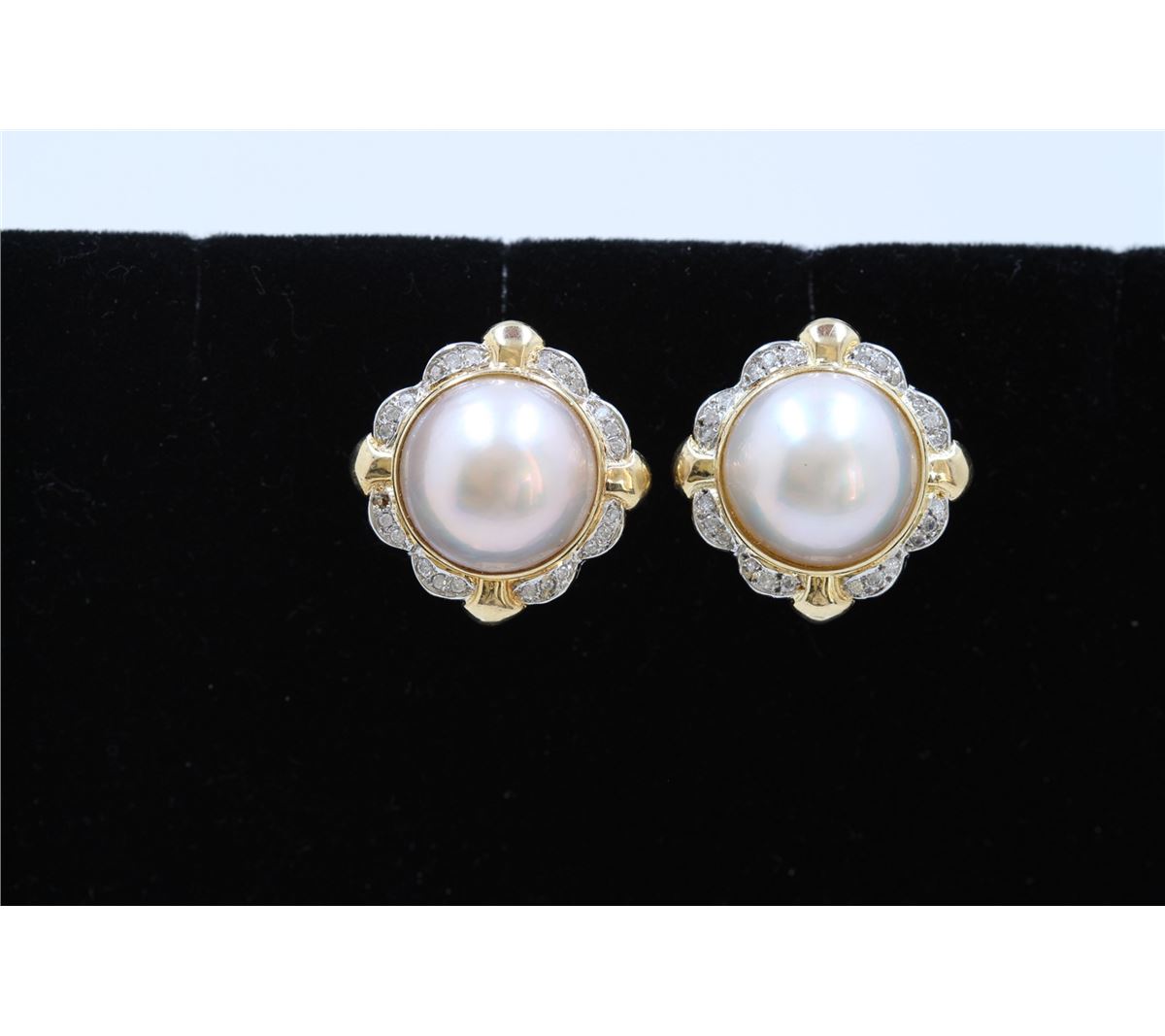 14K Y/G MABE PEARL AND DIAMOND EARRING/4.3 GRAMS/DIAMOND 0.02CT/PEARL 15.00MM