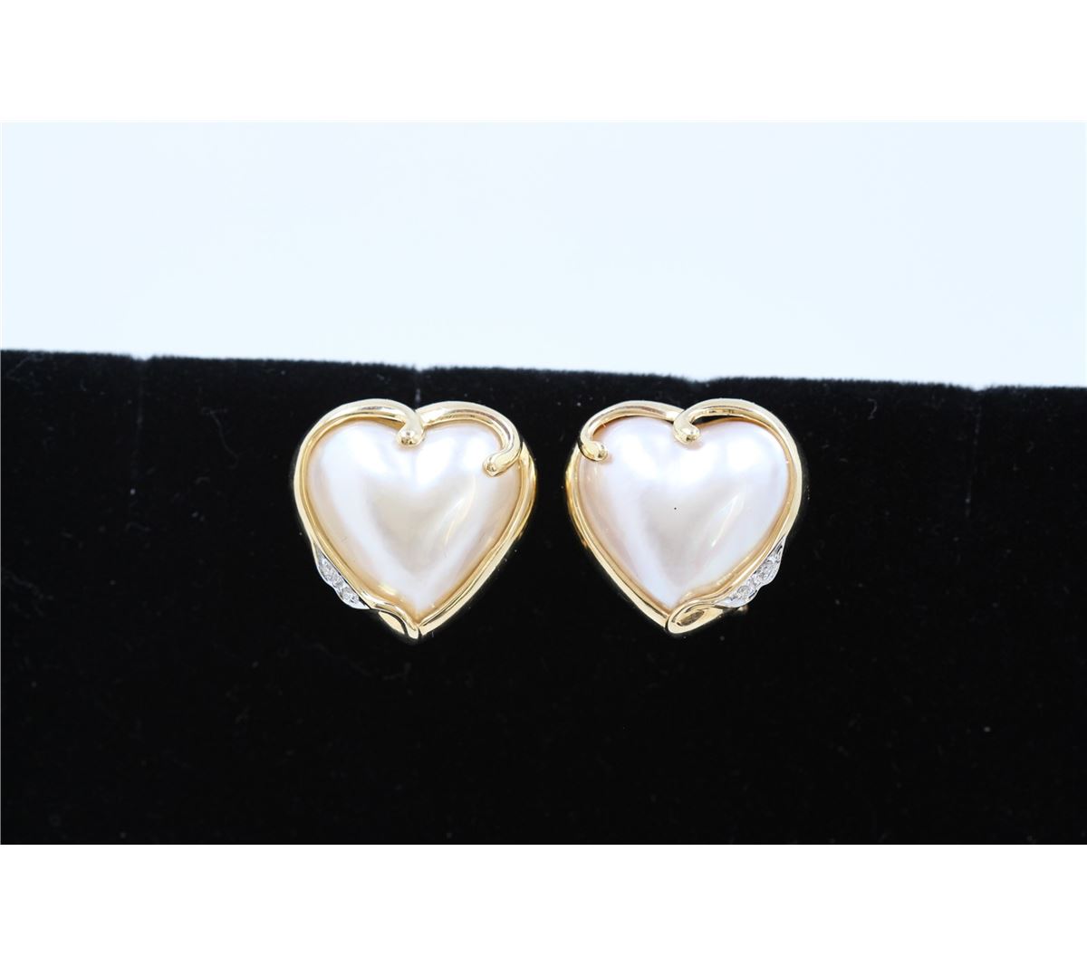 14K Y/G MABE PEARL AND DIAMOND EARRING/5.1 GRAMS/DIAMOND 0.02CT/PEARL 17.00MM APPROX