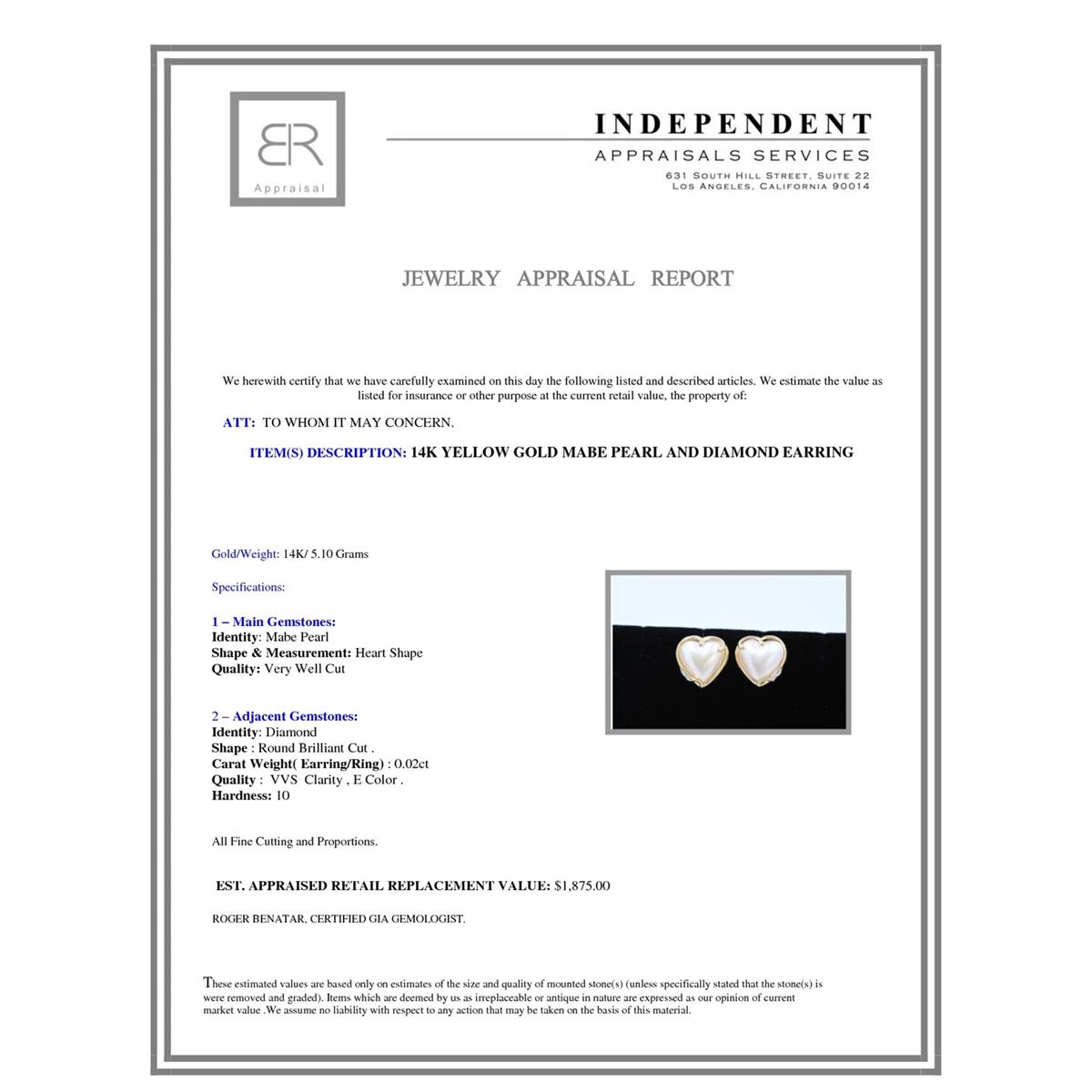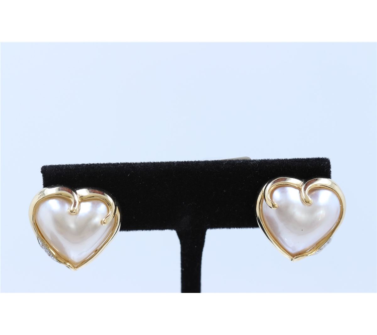 14K Y/G MABE PEARL AND DIAMOND EARRING/5.1 GRAMS/DIAMOND 0.02CT/PEARL 17.00MM APPROX