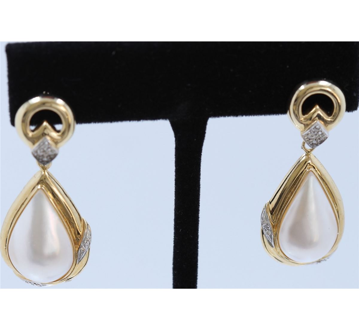 14K Y/G MABE PEARL AND DIAMOND EARRINGS/4.45 GRAMS/DIAMOND 0.08CT/PEARL 19.00Mm X 12.00Mm APPROX