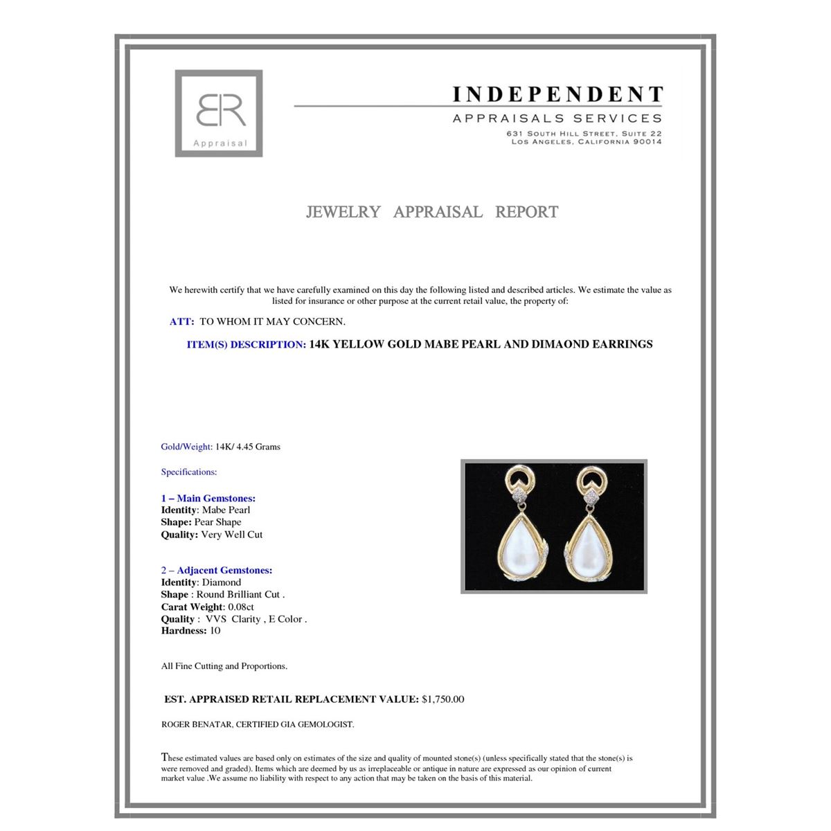 14K Y/G MABE PEARL AND DIAMOND EARRINGS/4.45 GRAMS/DIAMOND 0.08CT/PEARL 19.00Mm X 12.00Mm APPROX