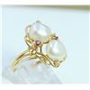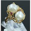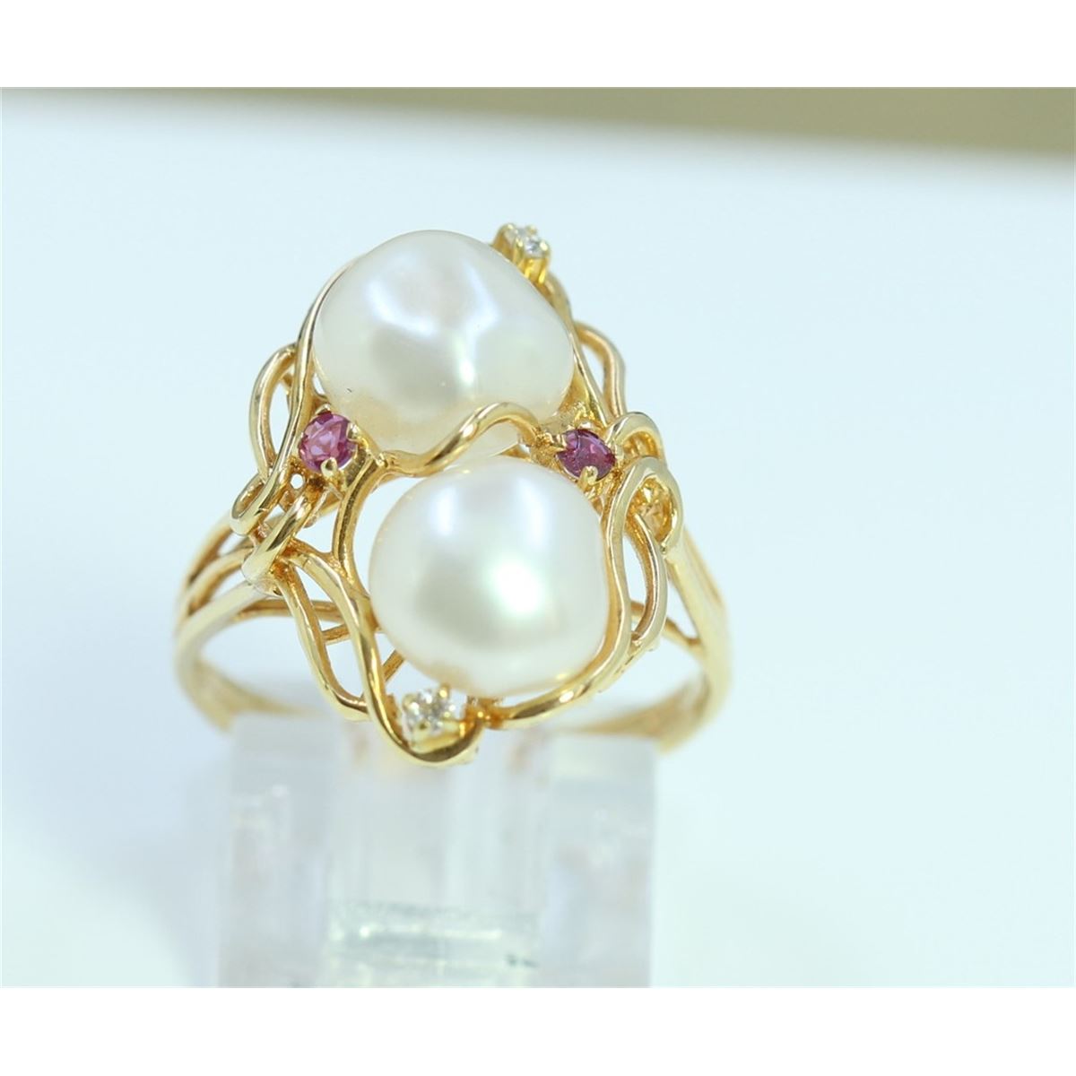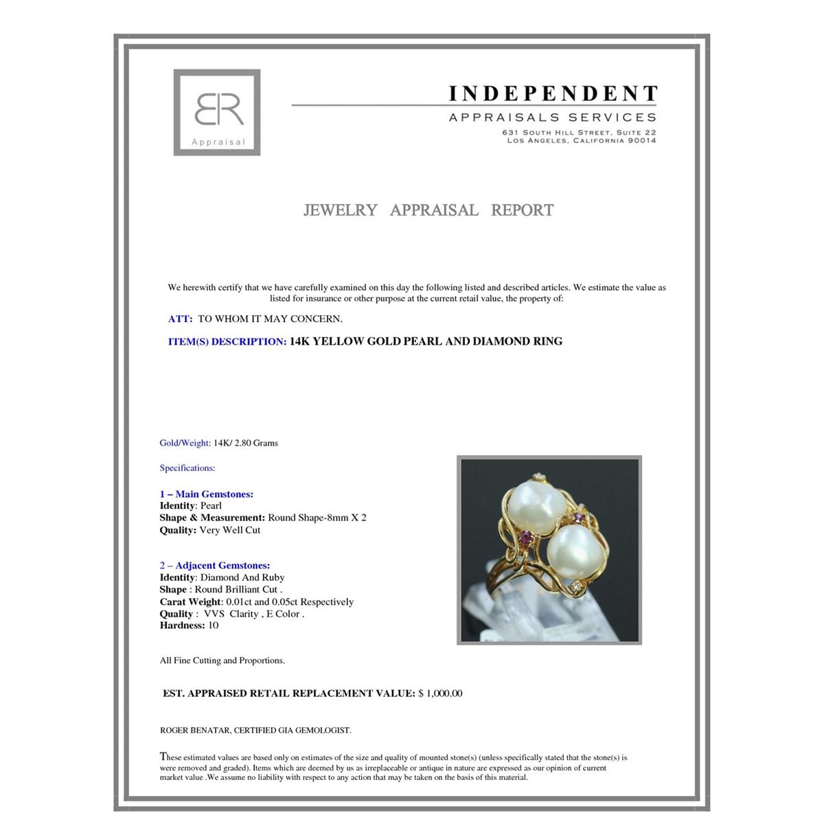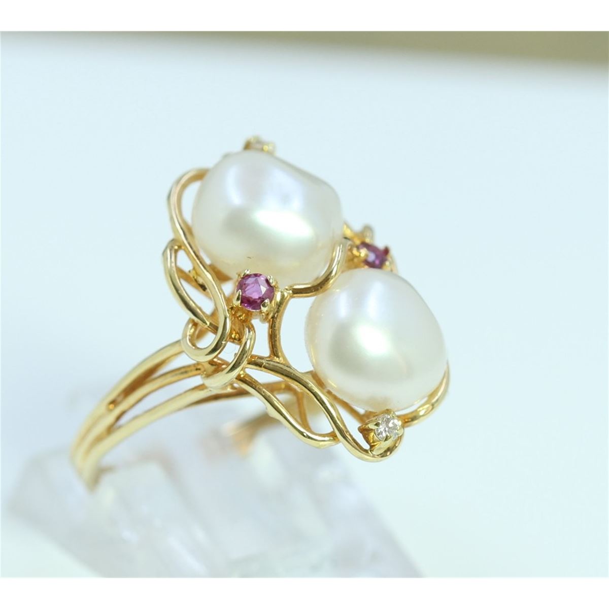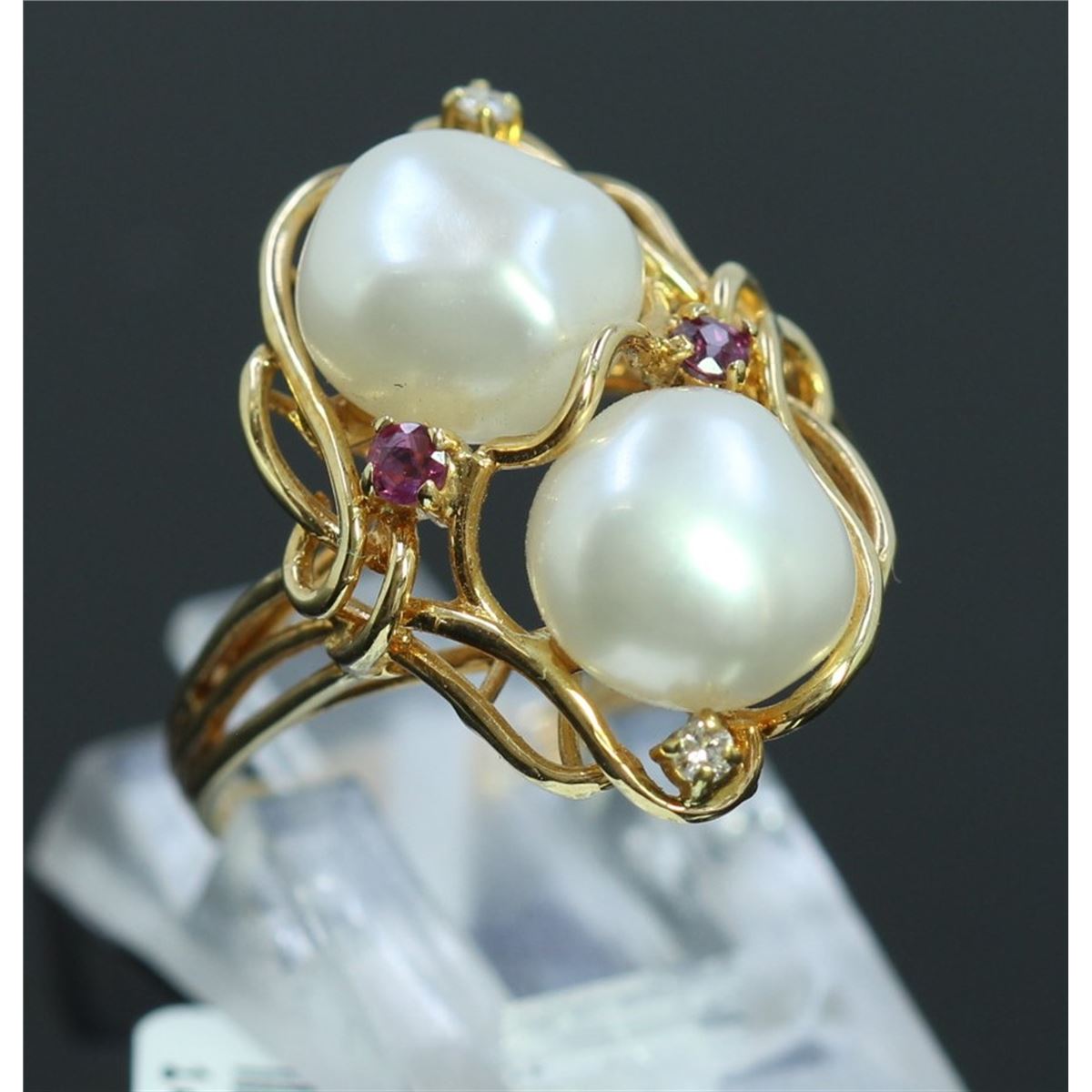 14K Y/G PEARL AND DIAMOND RING/2.8 GRAMS/ROUND DIAMOND 0.01CT/RUBY 0.05CT