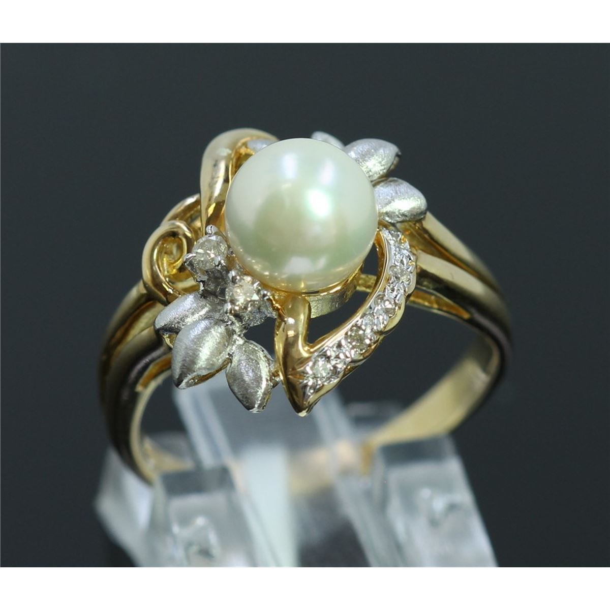 14K Y/G PEARL AND DIAMOND RING/3.70 GRAMS/ROUND DIAMOND 0.05CT/PEARL 7.20 mm