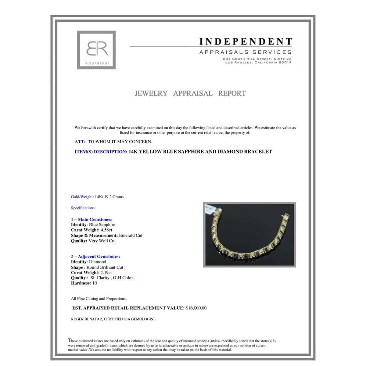 14K YELLOW BLUE SAPPHIRE AND DIAMOND BRACELET/19.2 GRAM /DIAMOND 2.19 CT/BLUE SAPPHIRE 4.58 CT