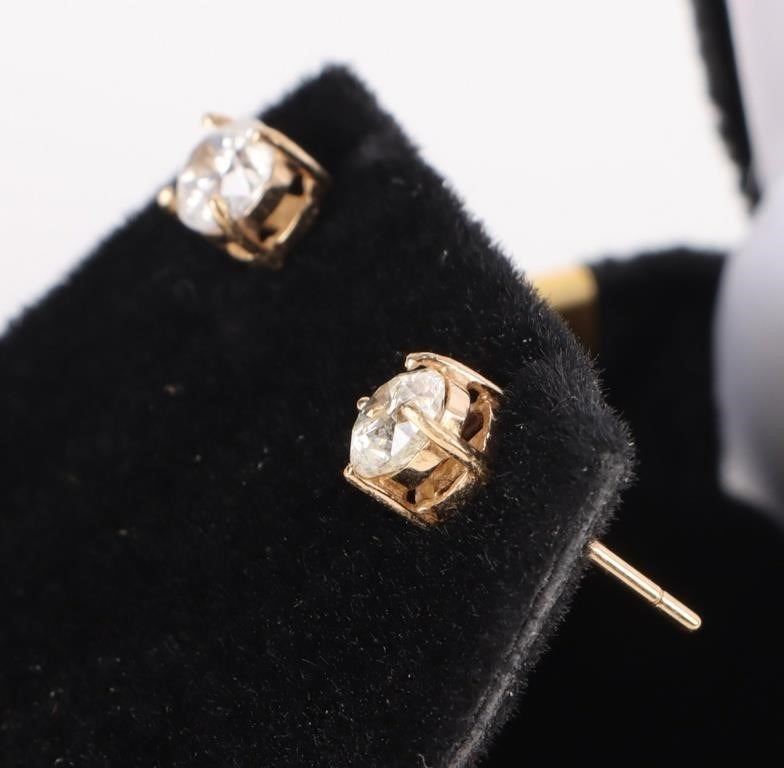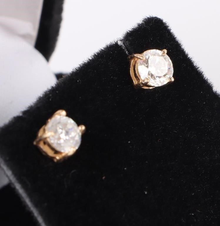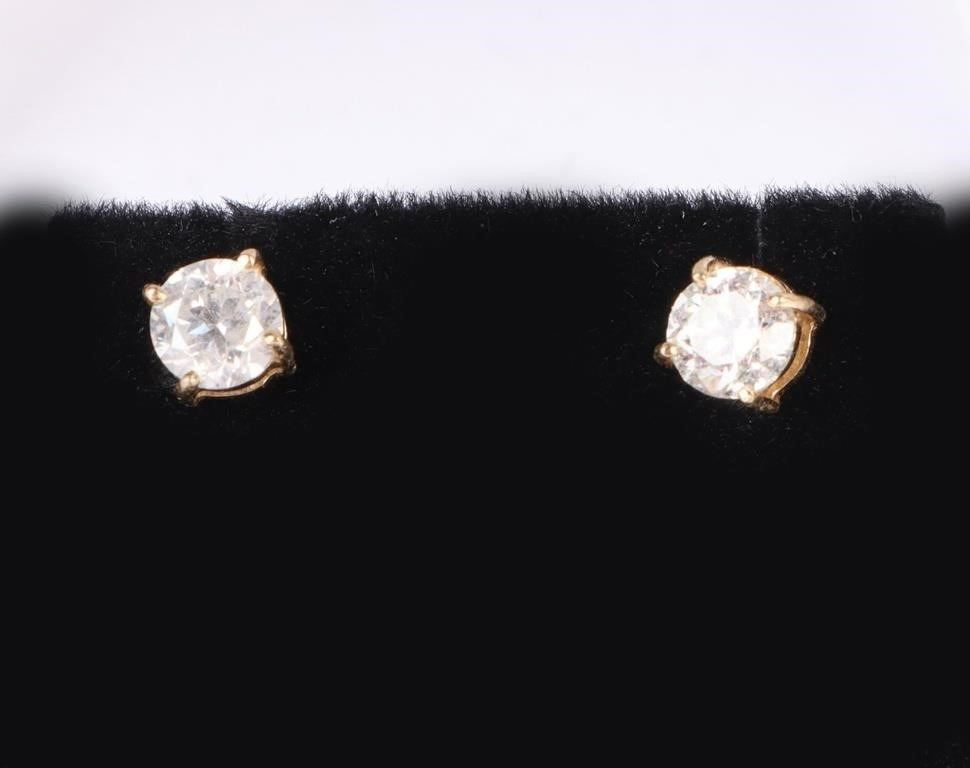 14K yellow gold 0.90CTW diamond stud earrings. These earrings come in original box.