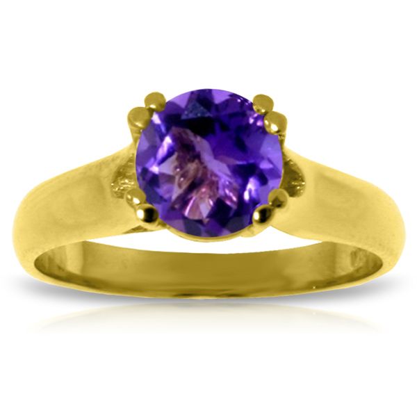 A 14k Gold Solitaire Ring features a bold looking Natural Amethyst.