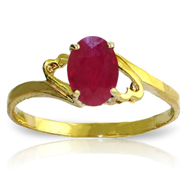 A 14 karat Gold Ring touched with an elegant design, boastfully showcase an oval shaped Ruby
