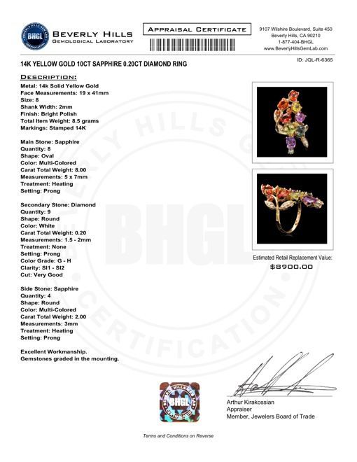Regarding Appraised Jewelry and Loose Stones - WESTBURY AUCTION GALLERIES sends them out to a third party for Retail Replacement Value Appraisals, which are the most common. These types of evaluations are written for insurance needs. This would be the cost to replace the jewelry with an item of equal quality and kind, considered to be the current market price or the replacement value. This type of appraisal is done to protect you in the event of damage or loss of a valuable item. Our appraisals are conducted by independent 3rd Party appraisal firms that utilizes Certified GIA Gemologist. Appraisals should be used for verification of gemstone and/or metal weight, size, and grade only, not actual value. Appraisal value should be considered for insurance purposes only, not actual value, as price varies greatly from retail locations thru out the world. Items should not be purchased with the expectation to resell for appraisal price, or for profit.