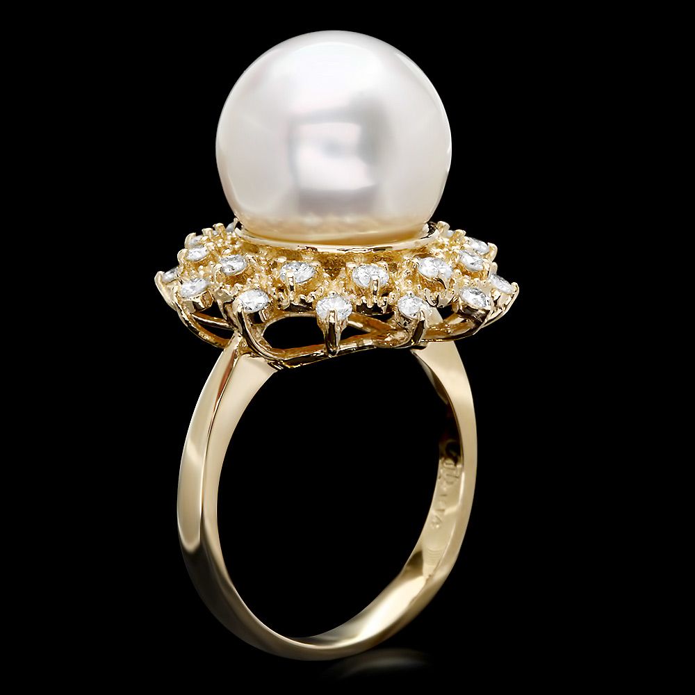 Retail: $7500.00 ****** Metal: 14k Solid Yellow Gold / Size: 7.5 / Total Item Weight: 8 grams / Country Made: USA / / Main Stone: Pearl / Color: White / Treatment: None / Type: South Sea / Color: White / Quality: AA+ / / Secondary Stone: Diamond / Carat Total Weight: 0.70 / Treatment: None / Color Grade: H - I / Clarity: SI1 - SI2 / Cut: Very Good / ****** Ref: JQL-R-4815