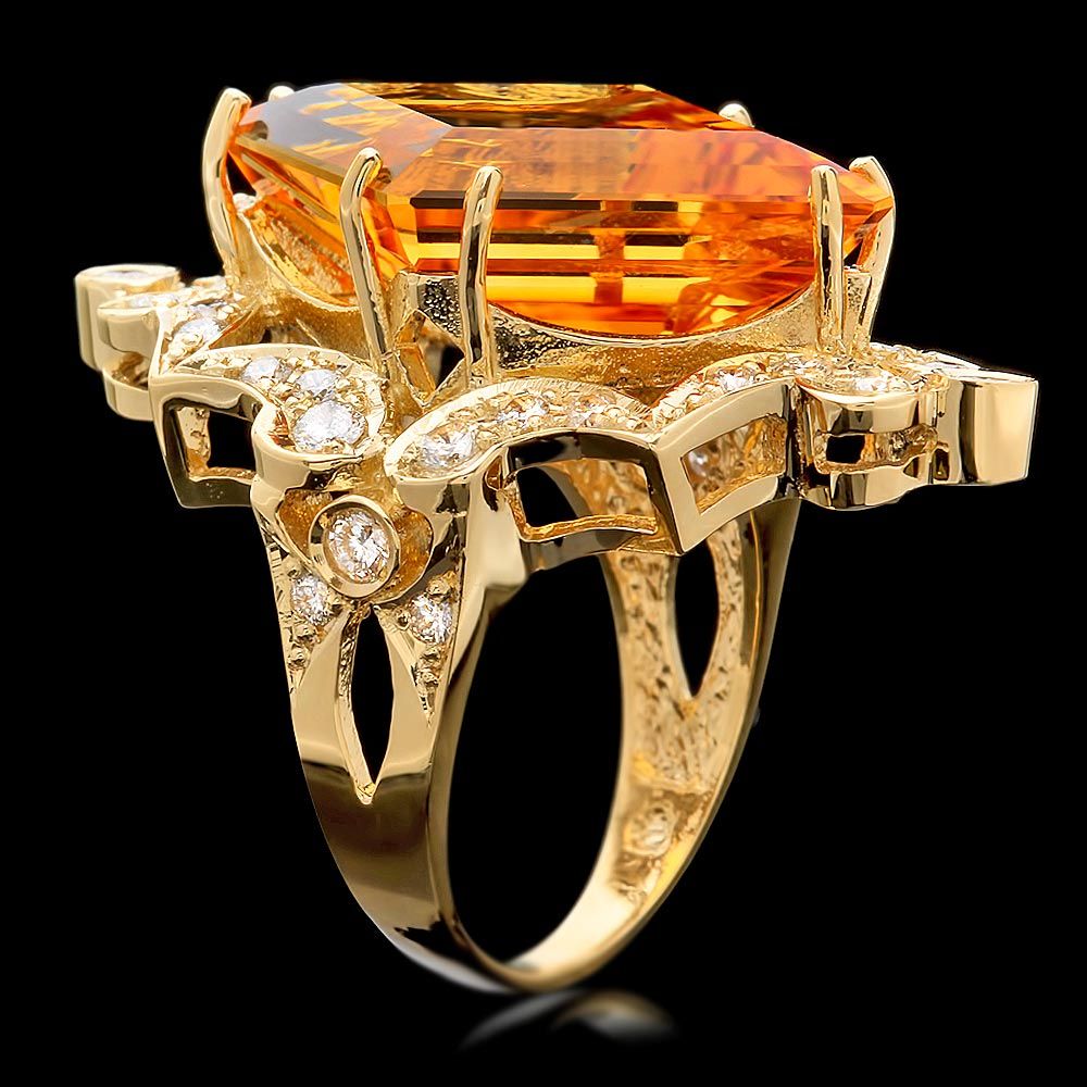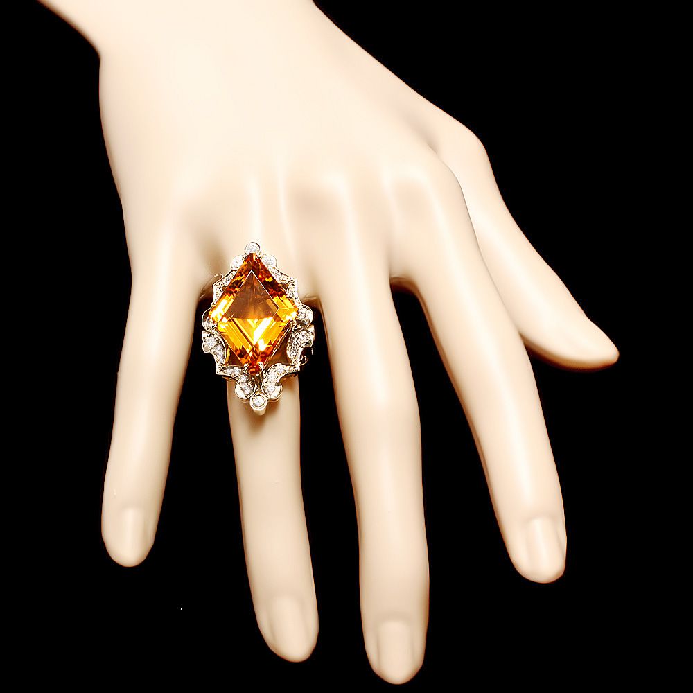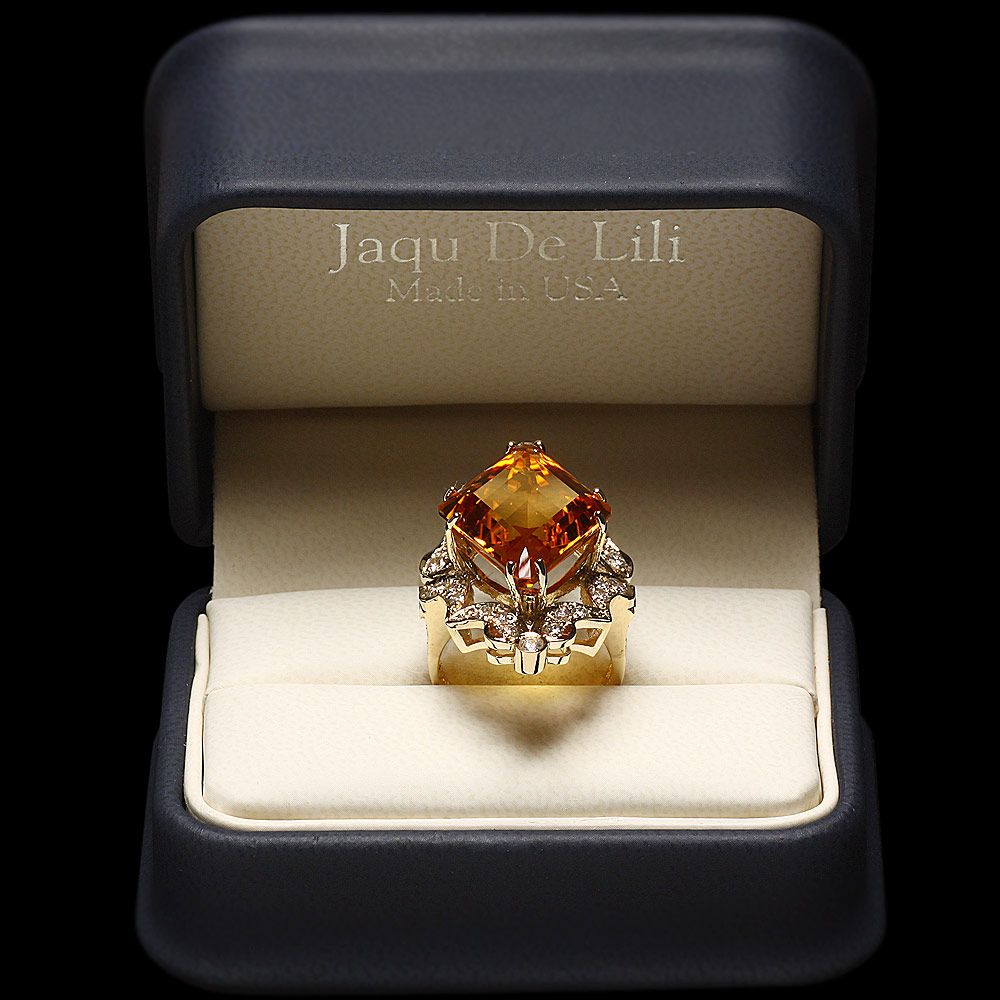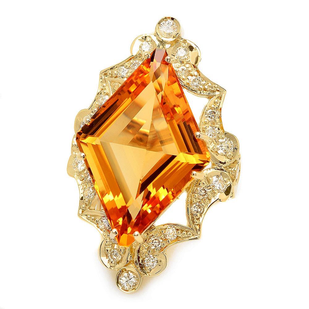 Retail: $12500.00 ****** Metal: 14k Solid Yellow Gold / Size: 7.5 / Total Item Weight: 13.0 grams / Country Made: USA / / Main Stone: Citrine / Color: Orange / Carat Total Weight: 16.00 / Treatment: None / Clarity: Type 2 / Cut: Very Good / / Secondary Stone: Diamond / Carat Total Weight: 1.00 / Treatment: None / Color Grade: G - H / Clarity: SI1 - SI2 / Cut: Very Good / ****** Ref: JQL-R-6958