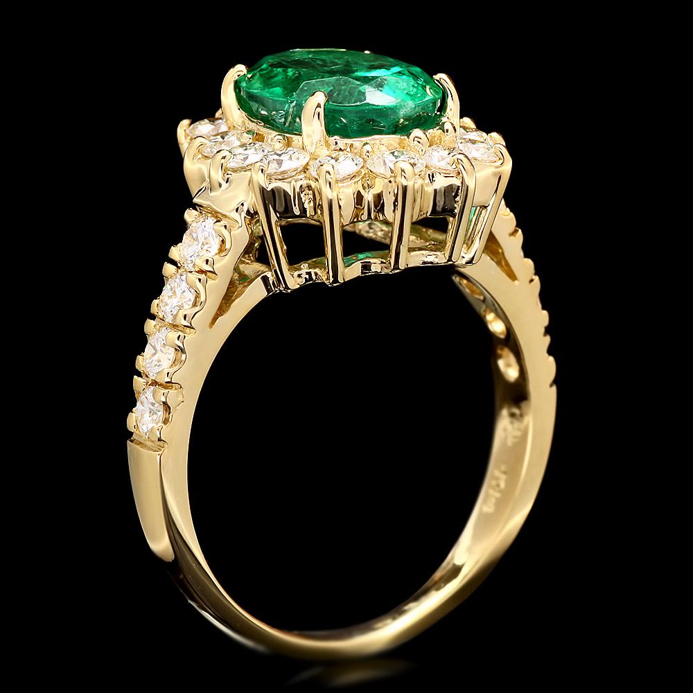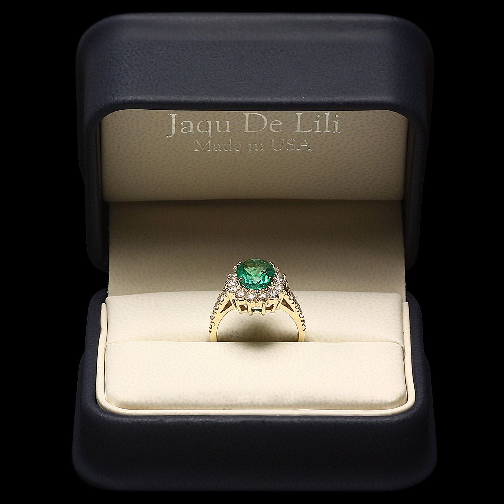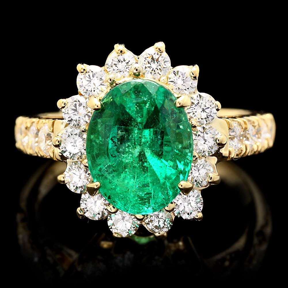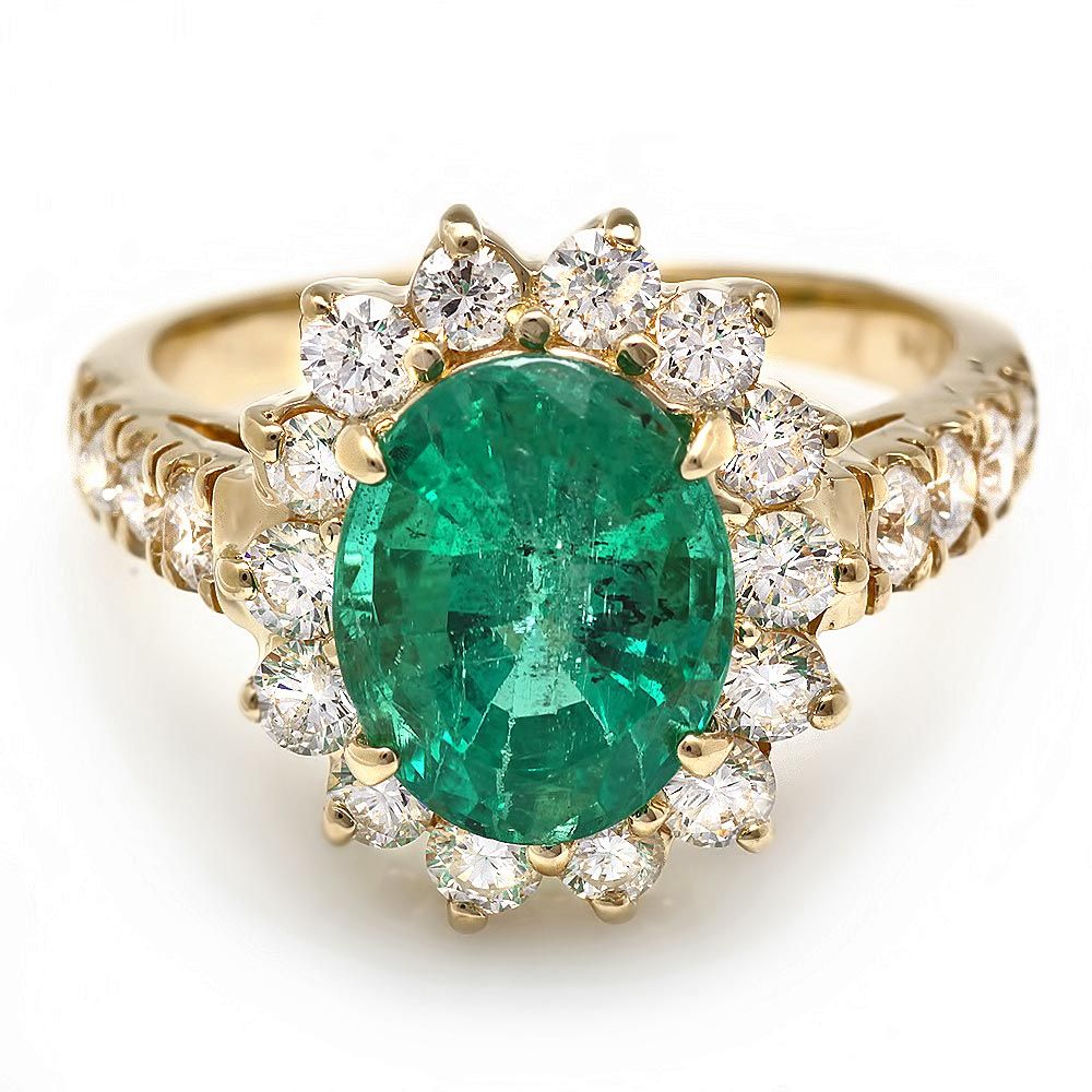 Retail: $15800.00 ****** Metal: 14k Solid Yellow Gold / Size: 6.5 / Total Item Weight: 5.0 grams / Country Made: USA / / Main Stone: Emerald / Color: Green / Carat Total Weight: 2.65 / Treatment: None / Clarity: Type 2 / Cut: Very Good / / Secondary Stone: Diamond / Carat Total Weight: 1.10 / Treatment: None / Color Grade: G - H / Clarity: SI1 - SI2 / Cut: Very Good / ****** Ref: JQL-R-6681