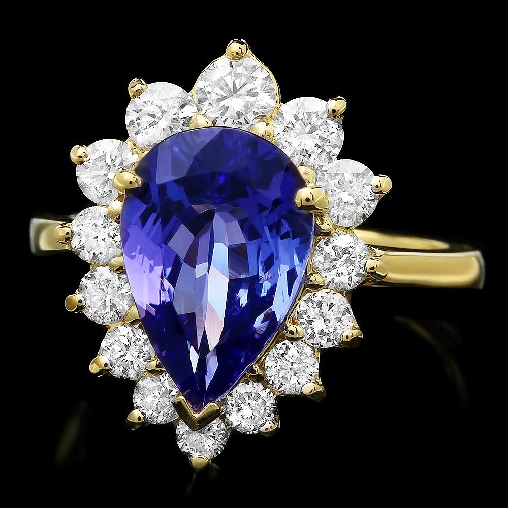 Retail: $9800.00 ****** Metal: 14k Solid Yellow Gold / Size: 7.25 / Total Item Weight: 5.9 grams / Country Made: USA / / Main Stone: Tanzanite / Color: Purple / Carat Total Weight: 3.50 / Treatment: None / Clarity: Type 2 / Cut: Very Good / / Secondary Stone: Diamond / Carat Total Weight: 1.10 / Treatment: None / Color Grade: G - H / Clarity: SI1 - SI2 / Cut: Very Good / ****** Ref: JQL-R-4191