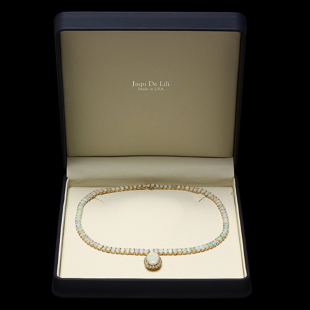 Retail: $36800.00 ****** Metal: 14k Solid Yellow Gold / Size: 17 / Total Item Weight: 33.5 grams / Country Made: USA / / Main Stone: Opal / Color: Multi-Colored / Carat Total Weight: 5.00 / Treatment: None / Origin: Australia / Type: Crystal / Toughness: Good / / Secondary Stone: Diamond / Carat Total Weight: 1.60 / Treatment: None / Color Grade: H - I / Clarity: SI1 - SI2 / Cut: Very Good / / Side Stone: Opal / Color: Multi-Colored / Carat Total Weight: 27.00 / Treatment: None / Origin: Australia / Type: Crystal / Toughness: Good / ****** Ref: JQL-N-5191