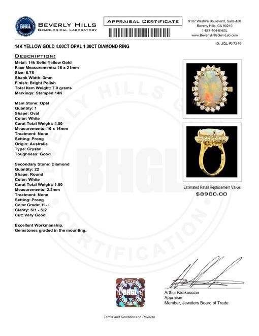 Regarding Appraised Jewelry and Loose Stones - WESTBURY AUCTION GALLERIES sends them out to a third party for Retail Replacement Value Appraisals, which are the most common. These types of evaluations are written for insurance needs. This would be the cost to replace the jewelry with an item of equal quality and kind, considered to be the current market price or the replacement value. This type of appraisal is done to protect you in the event of damage or loss of a valuable item. Our appraisals are conducted by independent 3rd Party appraisal firms that utilizes Certified GIA Gemologist. Appraisals should be used for verification of gemstone and/or metal weight, size, and grade only, not actual value. Appraisal value should be considered for insurance purposes only, not actual value, as price varies greatly from retail locations thru out the world. Items should not be purchased with the expectation to resell for appraisal price, or for profit.