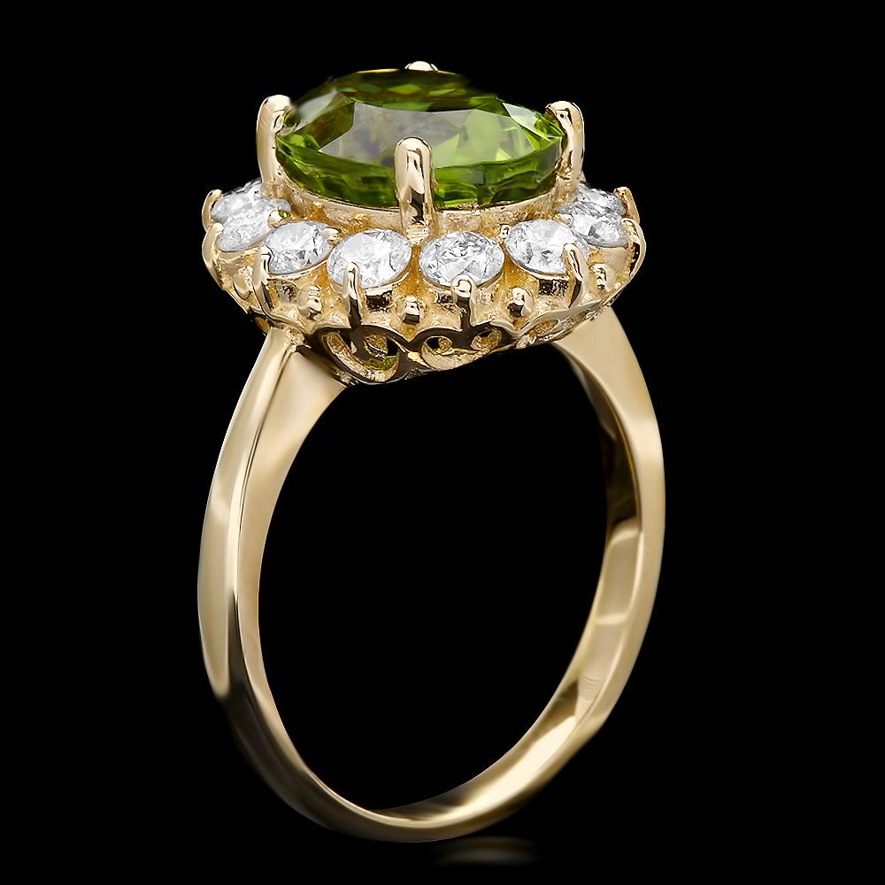 Retail: $6800.00 ****** Metal: 14k Solid Yellow Gold / Size: 8 / Total Item Weight: 5.5 grams / Country Made: USA / / Main Stone: Peridot / Color: Green / Carat Total Weight: 4.50 / Treatment: None / Clarity: Type 2 / Cut: Very Good / / Secondary Stone: Diamond / Carat Total Weight: 1.20 / Treatment: None / Color Grade: H - I / Clarity: SI1 - SI2 / Cut: Very Good / ****** Ref: JQL-R-4807