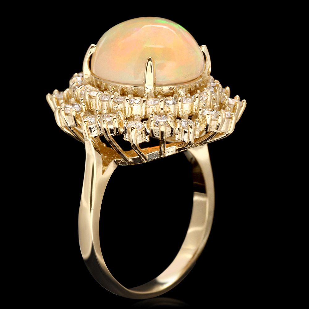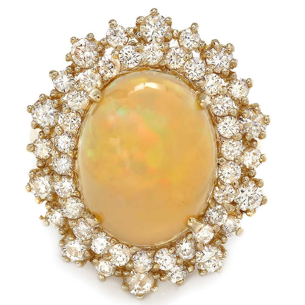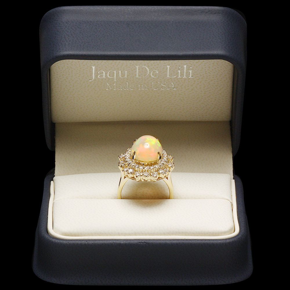 Retail: $14870.00 ****** Metal: 14k Solid Yellow Gold / Size: 6.75 / Total Item Weight: 8.0 grams / Country Made: USA / / Main Stone: Opal / Color: Multi-Colored / Carat Total Weight: 5.00 / Treatment: None / Origin: Australia / Type: Crystal / Toughness: Good / / Secondary Stone: Diamond / Carat Total Weight: 1.42 / Treatment: None / Color Grade: G - H / Clarity: SI1 - SI2 / Cut: Very Good / ****** Ref: JQL-R-6297