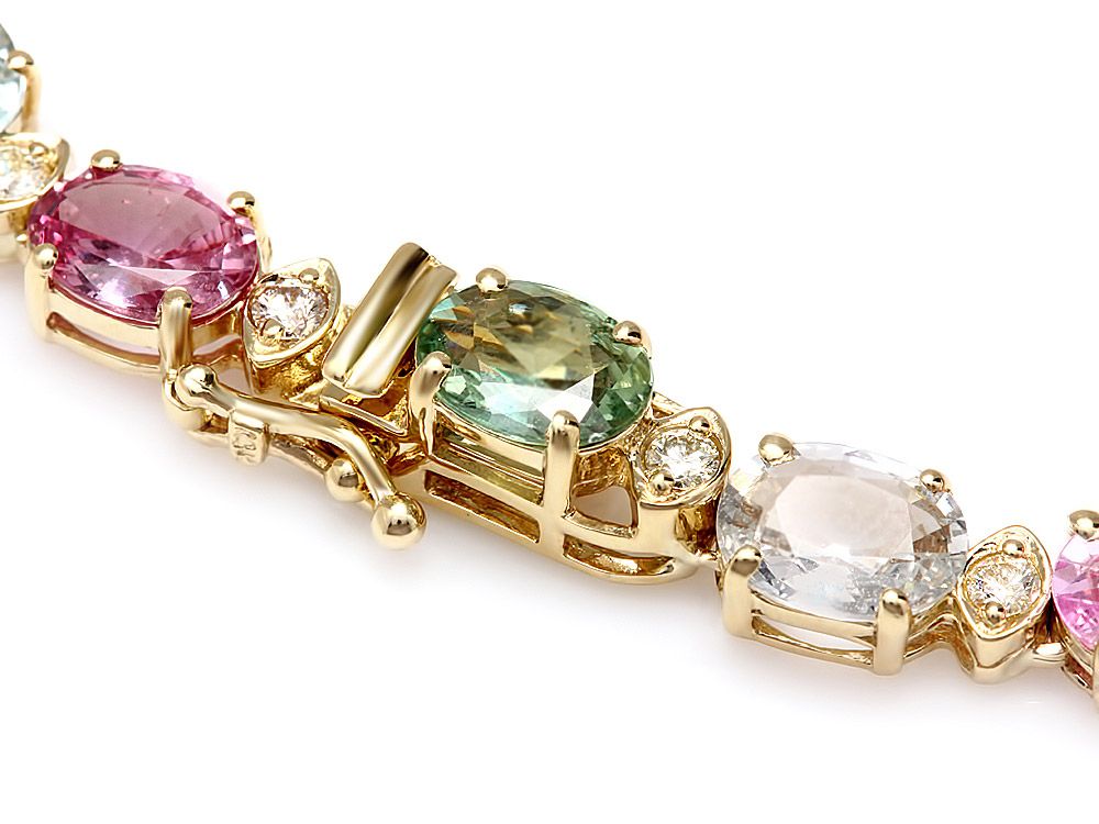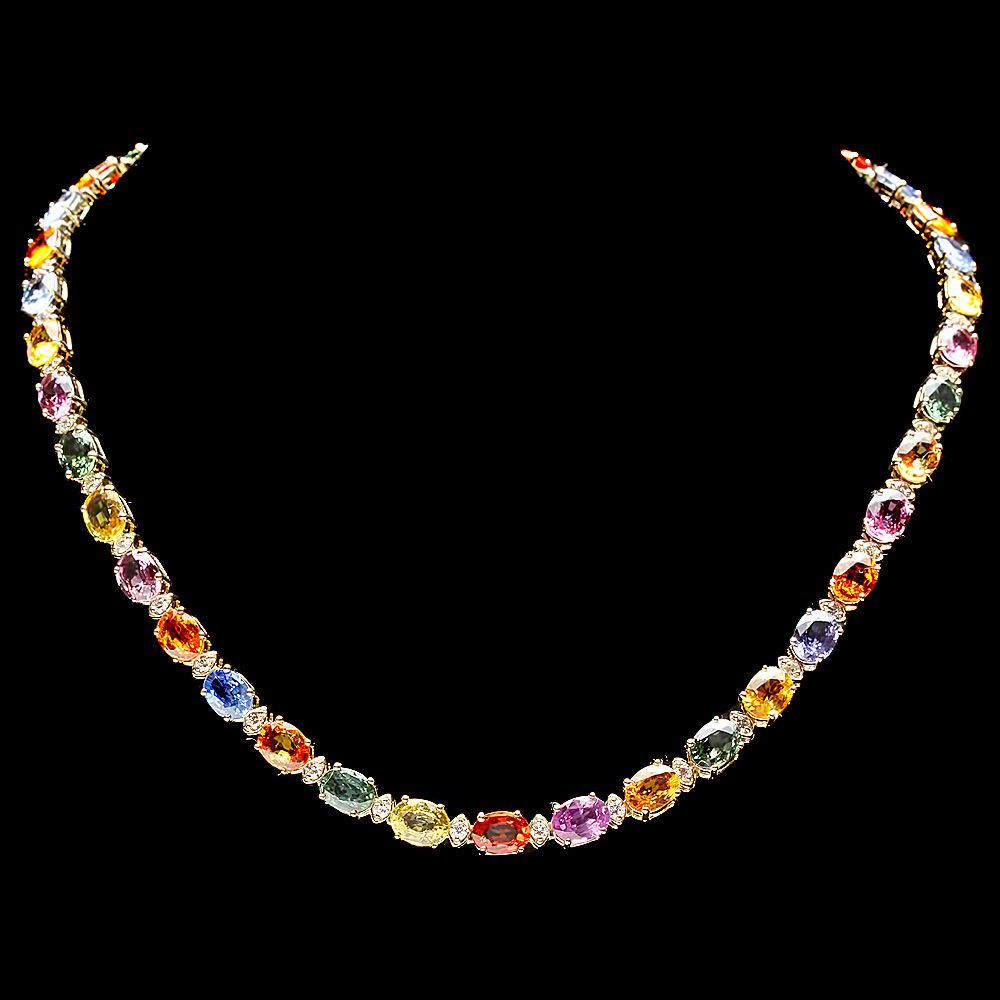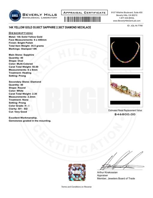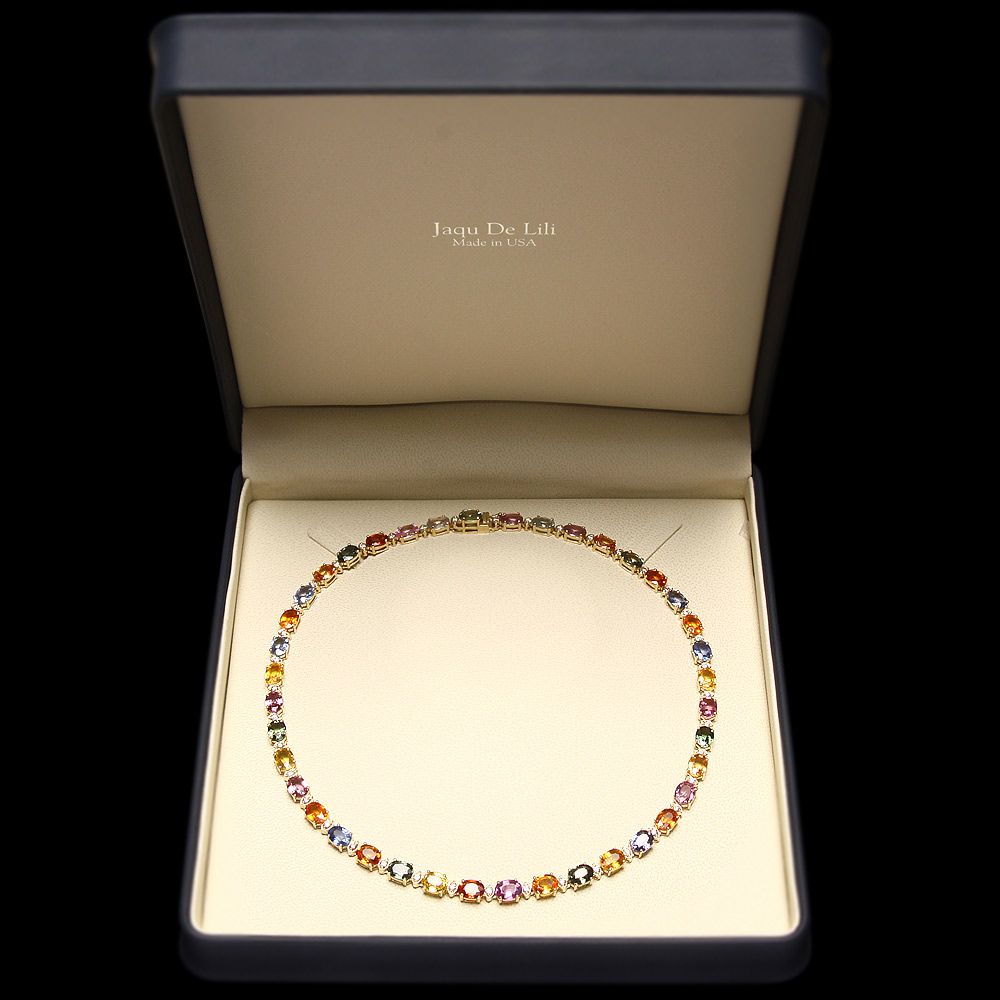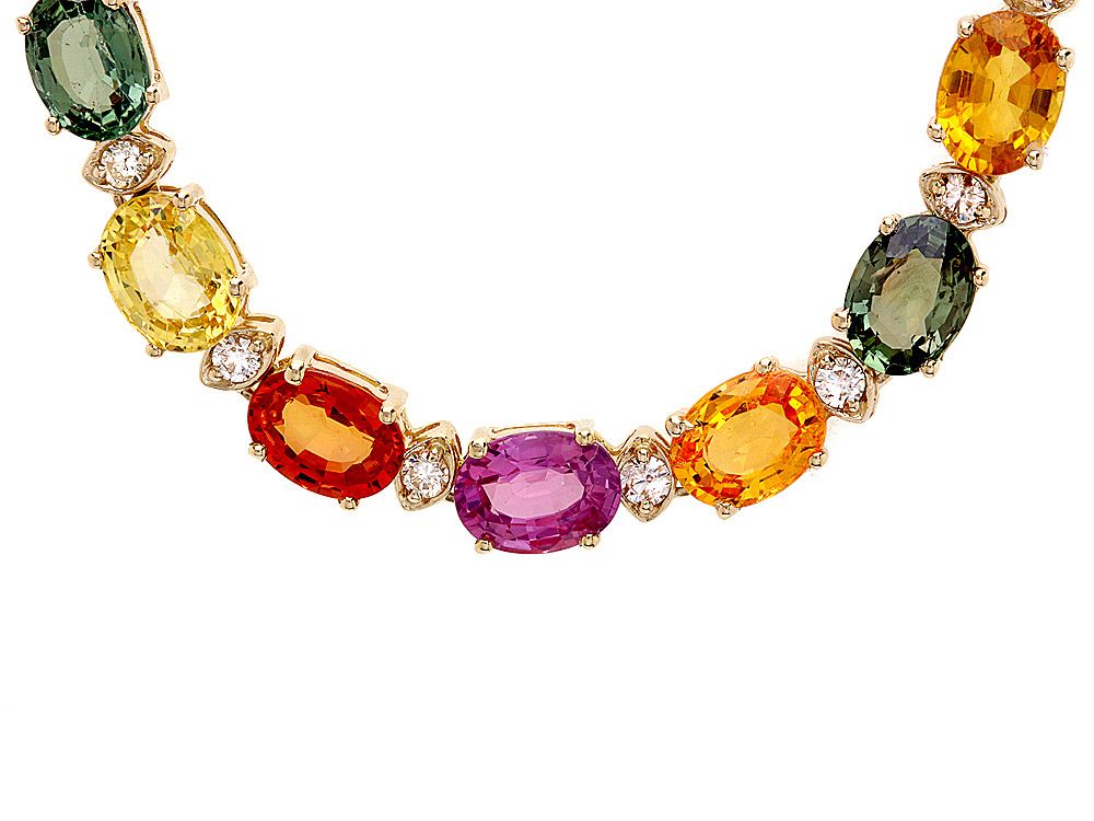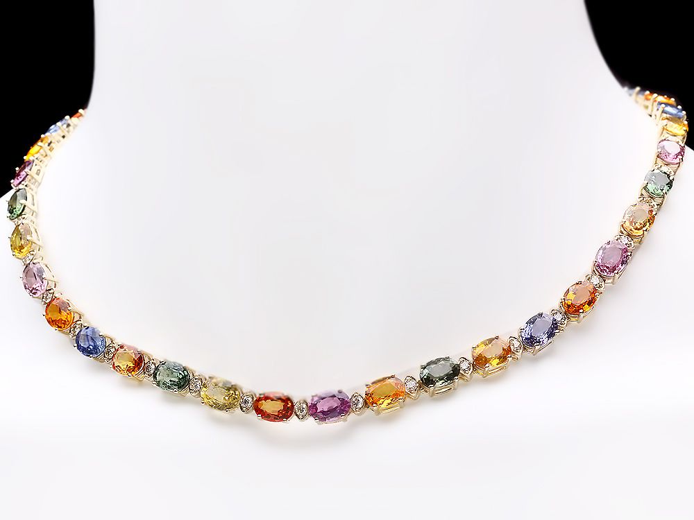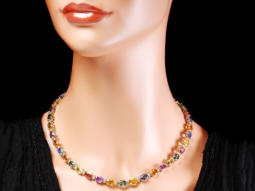 Retail: $46800.00 ****** Metal: 14k Solid Yellow Gold / Size: 17.5 / Total Item Weight: 35.5 grams / Country Made: USA / / Main Stone: Sapphire / Color: Multi-Colored / Carat Total Weight: 55.00 / Treatment: Heating / / Secondary Stone: Diamond / Carat Total Weight: 2.30 / Treatment: None / Color Grade: H - I / Clarity: SI1 - SI2 / Cut: Very Good / ****** Ref: JQL-N-7790