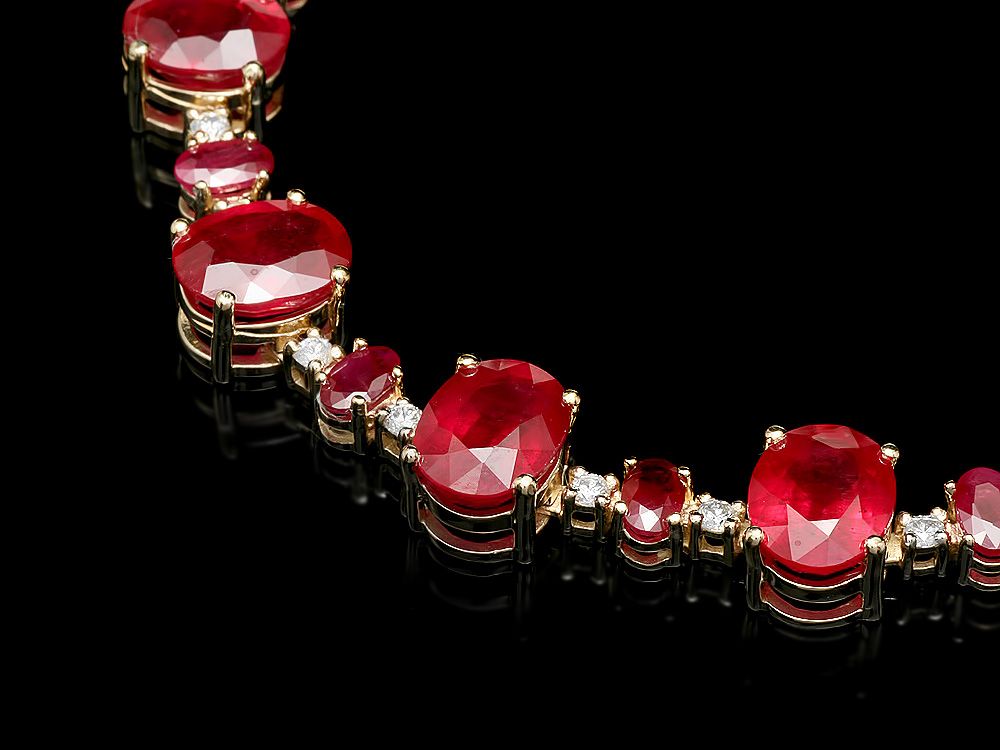 Retail: $34500.00 ****** Metal: 14k Solid Yellow Gold / Size: 17.5 / Total Item Weight: 49 grams / Country Made: USA / / Main Stone: Ruby / Color: Red / Carat Total Weight: 65.00 / Treatment: Filling / Clarity: Type 2 / Cut: Very Good / / Secondary Stone: Diamond / Carat Total Weight: 2.00 / Treatment: None / Color Grade: G - H / Clarity: SI1 - SI2 / Cut: Very Good / / Side Stone: Ruby / Color: Red / Carat Total Weight: 8.00 / Treatment: Filling / Clarity: Type 2 / Cut: Very Good / ****** Ref: JQL-N-4598