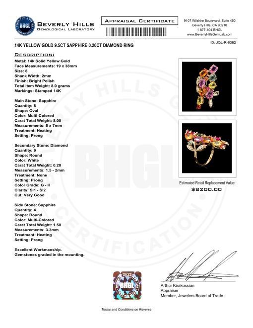 Regarding Appraised Jewelry and Loose Stones - WESTBURY AUCTION GALLERIES sends them out to a third party for Retail Replacement Value Appraisals, which are the most common. These types of evaluations are written for insurance needs. This would be the cost to replace the jewelry with an item of equal quality and kind, considered to be the current market price or the replacement value. This type of appraisal is done to protect you in the event of damage or loss of a valuable item. Our appraisals are conducted by independent 3rd Party appraisal firms that utilizes Certified GIA Gemologist. Appraisals should be used for verification of gemstone and/or metal weight, size, and grade only, not actual value. Appraisal value should be considered for insurance purposes only, not actual value, as price varies greatly from retail locations thru out the world. Items should not be purchased with the expectation to resell for appraisal price, or for profit.