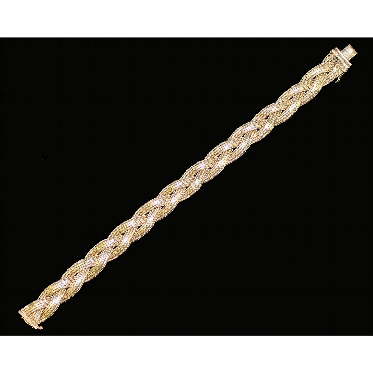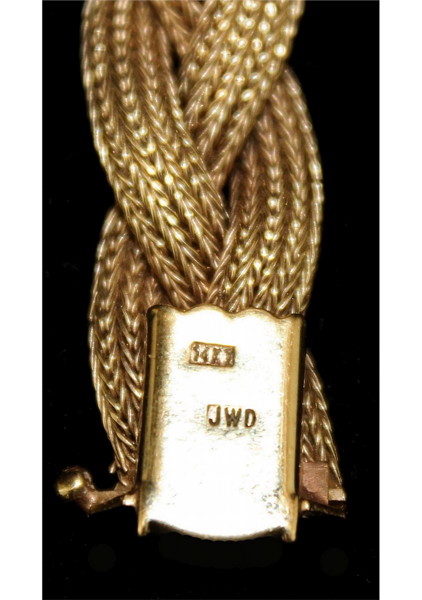 Mid 20th century. Woven mesh band with safety clasp. Length, 7.25 inches Weight, 22.8 grams
