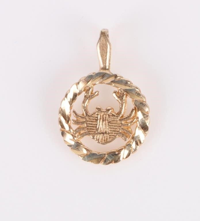 14k yellow gold crab ladies pendant.