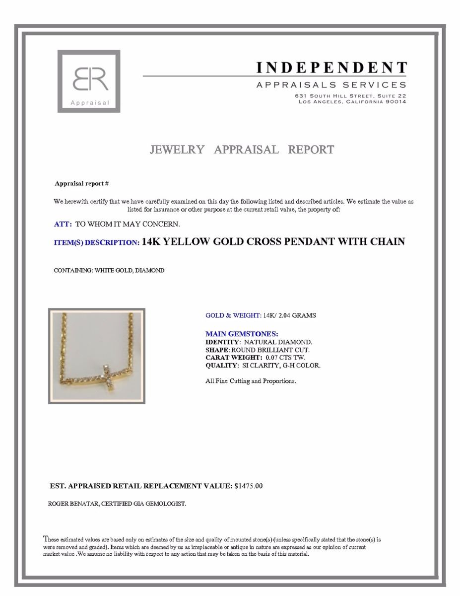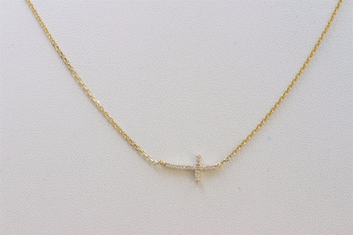 14K YELLOW GOLD CROSS PENDANT WITH CHAIN :2.04g/Diamond:0.07ct