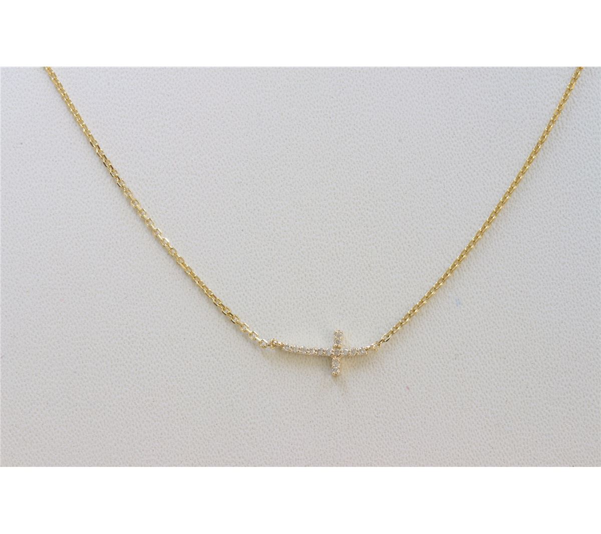 14K YELLOW GOLD CROSS PENDANT WITH CHAIN :2.04g/Diamond:0.07ct