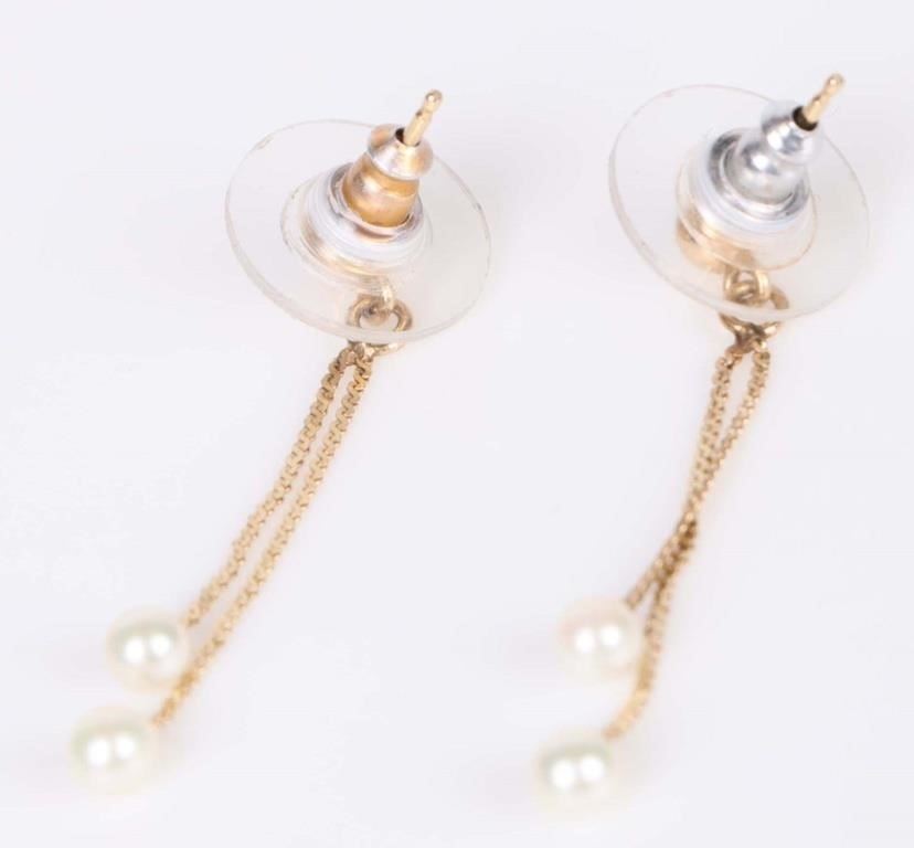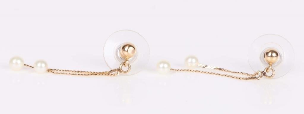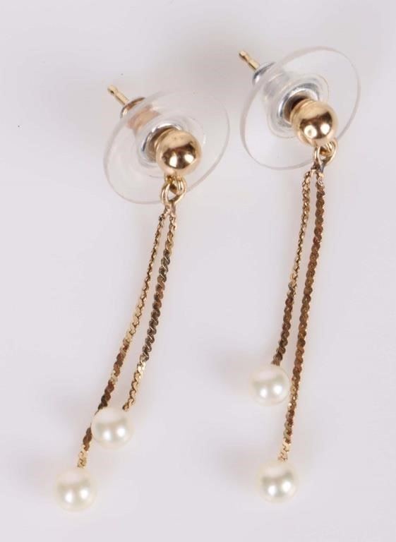 14k yellow gold dangle earrings with 4mm pearls.