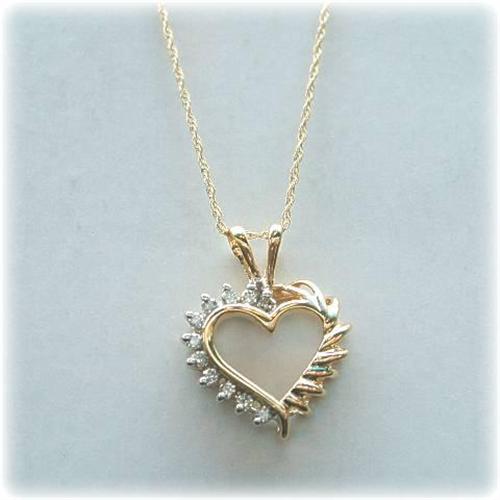 MODERN DIAMOND HEART PENDANT IN SOLID 14 KARAT YELLOW GOLD ON 18 INCH BALL AND BEAD CHAIN