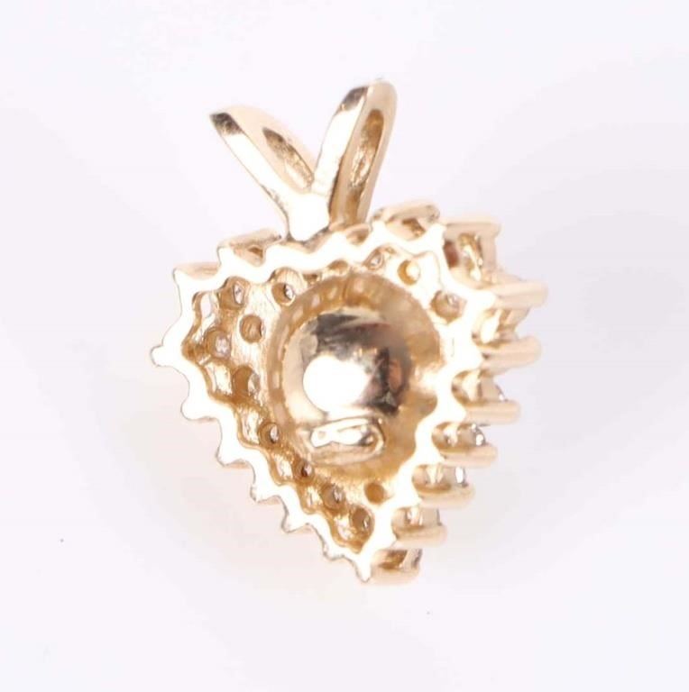 14k yellow gold diamond pearl ladies heart pendant.