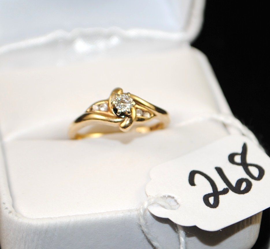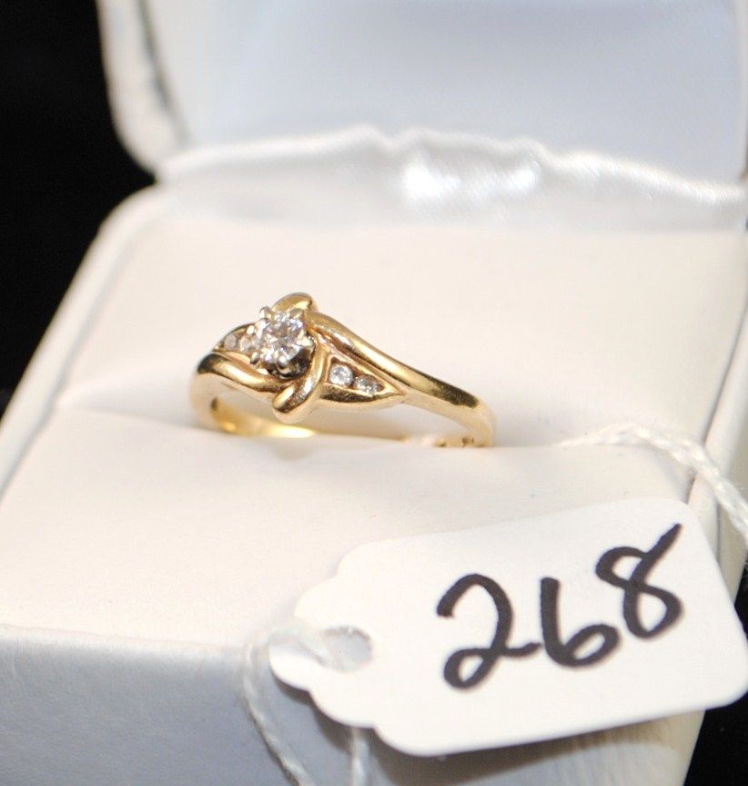14K YELLOW GOLD DIAMOND RING WITH FIVE ROUND DIAMONDS - WEIGHS 3.0 GRAMS - APPAISED RETAIL REPLACEMENT IS $900.00 - COMES WITH THE JEWELERS APPRAISAL CARD FOR INSURANCE