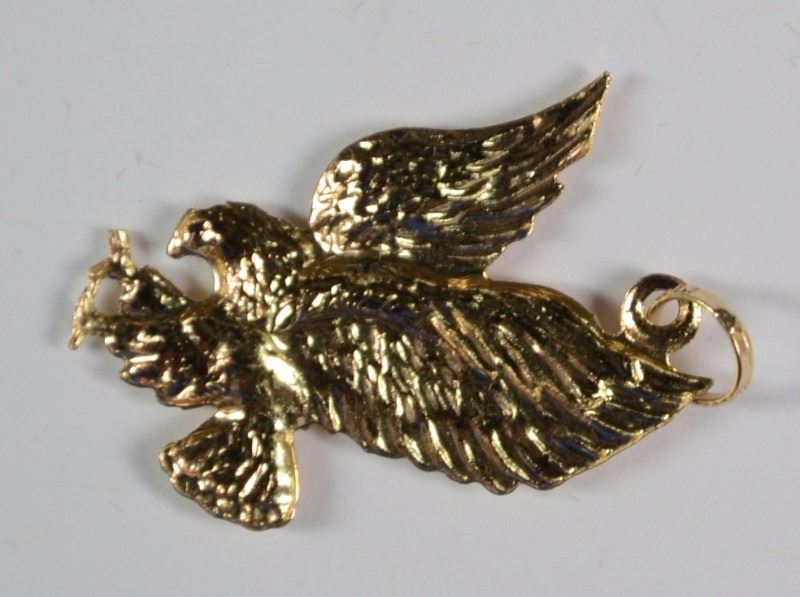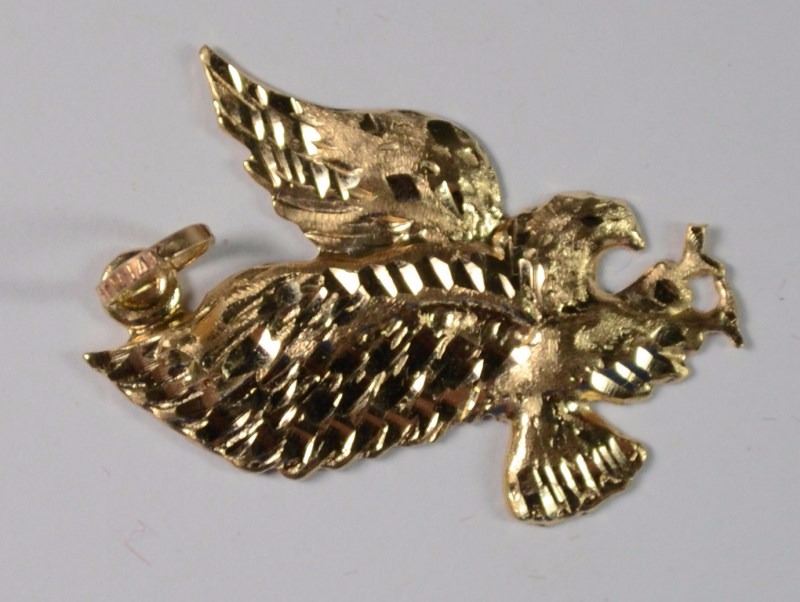 SHOW YOUR PRIDE IN OUR NATION BY WEARING THE 14K DIAMOND CUT GOLD PENDANT. 1 1/4" IN LENGTH SILVERTOWNE AUCTIONS IS KNOWN FOR QUALITY & SERVICE. REGISTER TO BID! ESTIMATE $100-$200